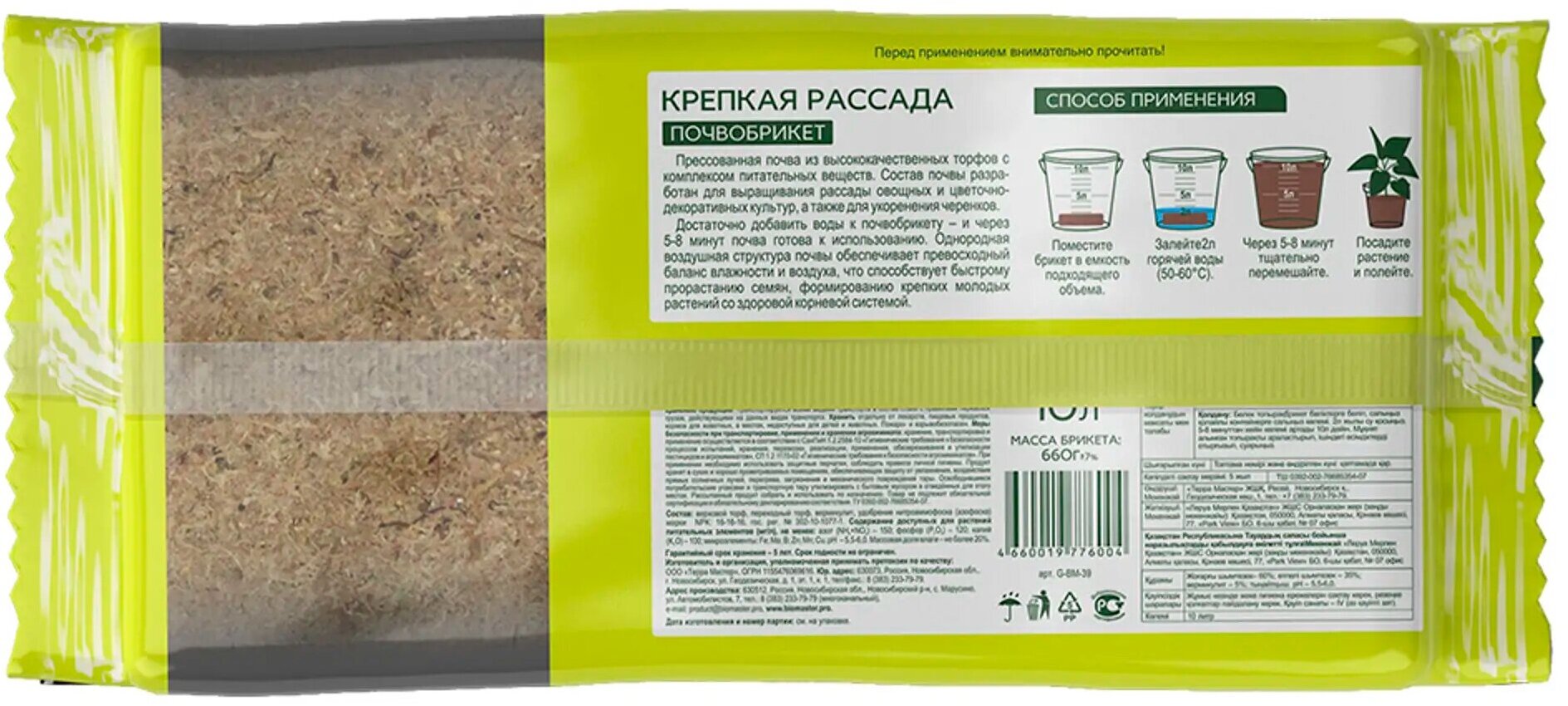 Почвобрикет Крепкая рассада 10 л Биомастер