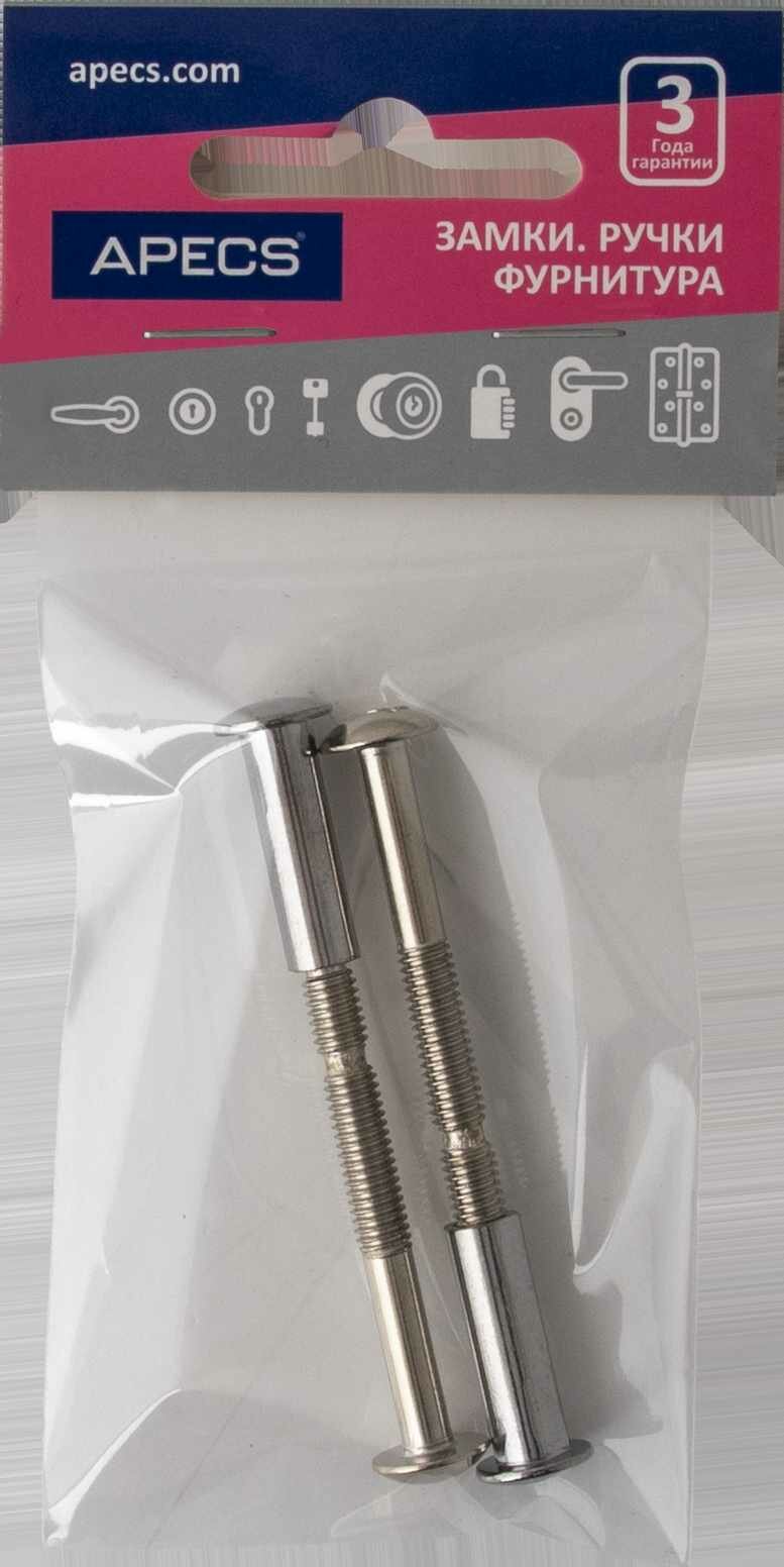 **Стяжка винтовая Apecs SCR-M6-60(20)-NI** используется для монтажа ручек в двери. Применяется в том случае, если полотно обладает большей или меньшей толщиной, что делает установку имеющихся стяжек невозможной. Крепятся с помощью саморезов, которые входят в комплект поставки.