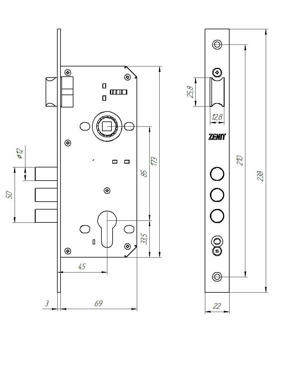 - Габаритные размеры корпуса замка (В*Ш*Г), мм: 173*69