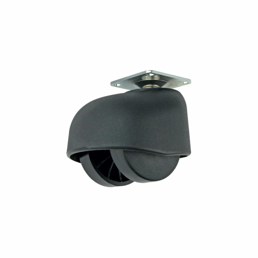 Колесо поворотное с площадкой — опора для кресел, тумб, столиков и другой домашней и офисной мебели. Подвижное соединение колеса и площадки обеспечивает вращение на 360°. Колесо диаметром 50 мм выглядит миниатюрным и аккуратным. Рассчитано на нагрузку до 70 кг. Цвет — черный. Поворотная колесная опора позволяет легко перемещать мебель в любом направлении.