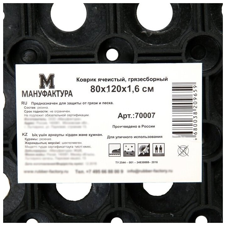 **Коврик ячеистый** подойдет для эксплуатации внутри и снаружи помещений. Предназначен для очищения обуви от налипшей грязи и влаги. Пластичный материал легко гнется, что упрощает сворачивание в рулон и обеспечивает компактность хранения. Для очистки рекомендуется промыть изделие под проточной водой и дать высохнуть, промокнуть сухой тряпкой.