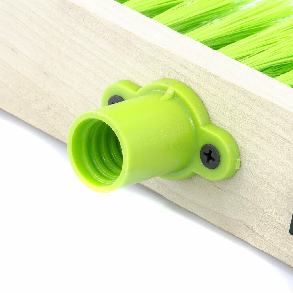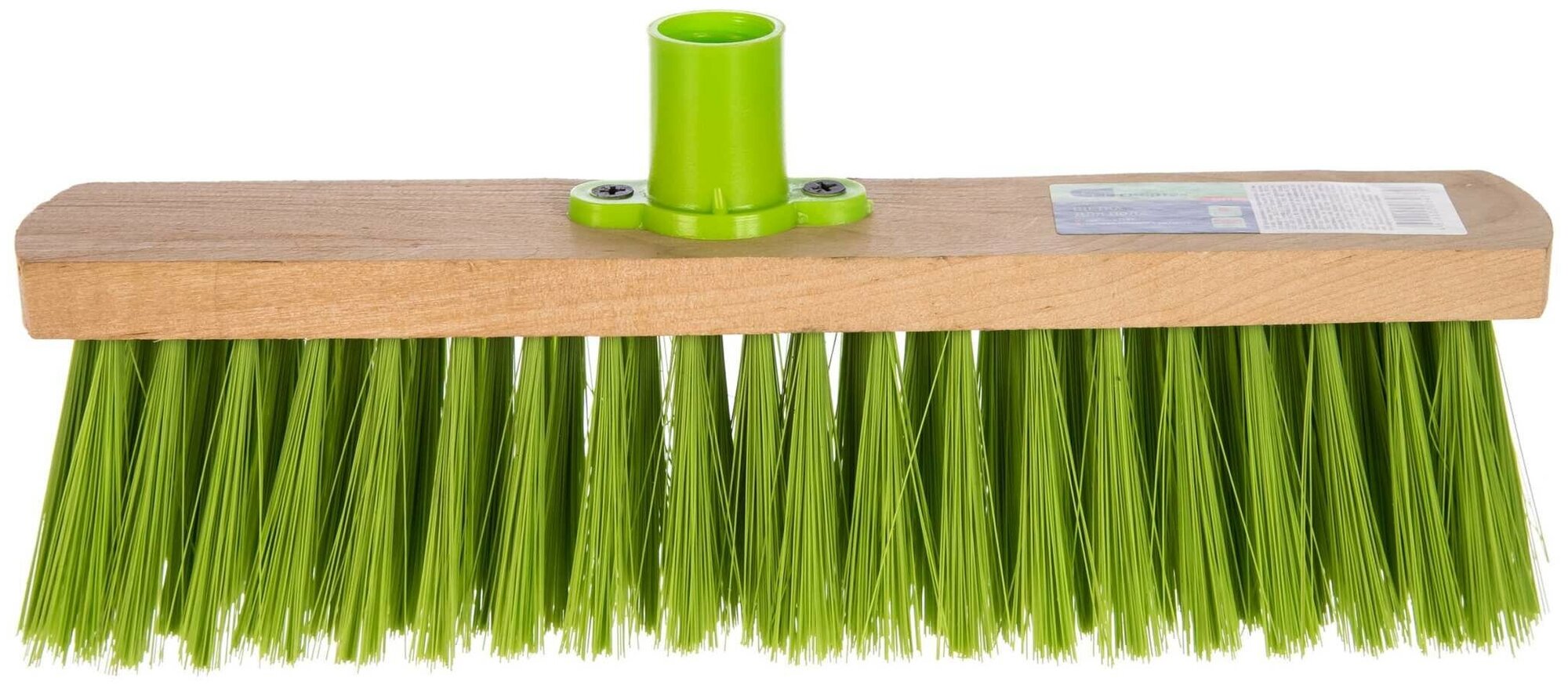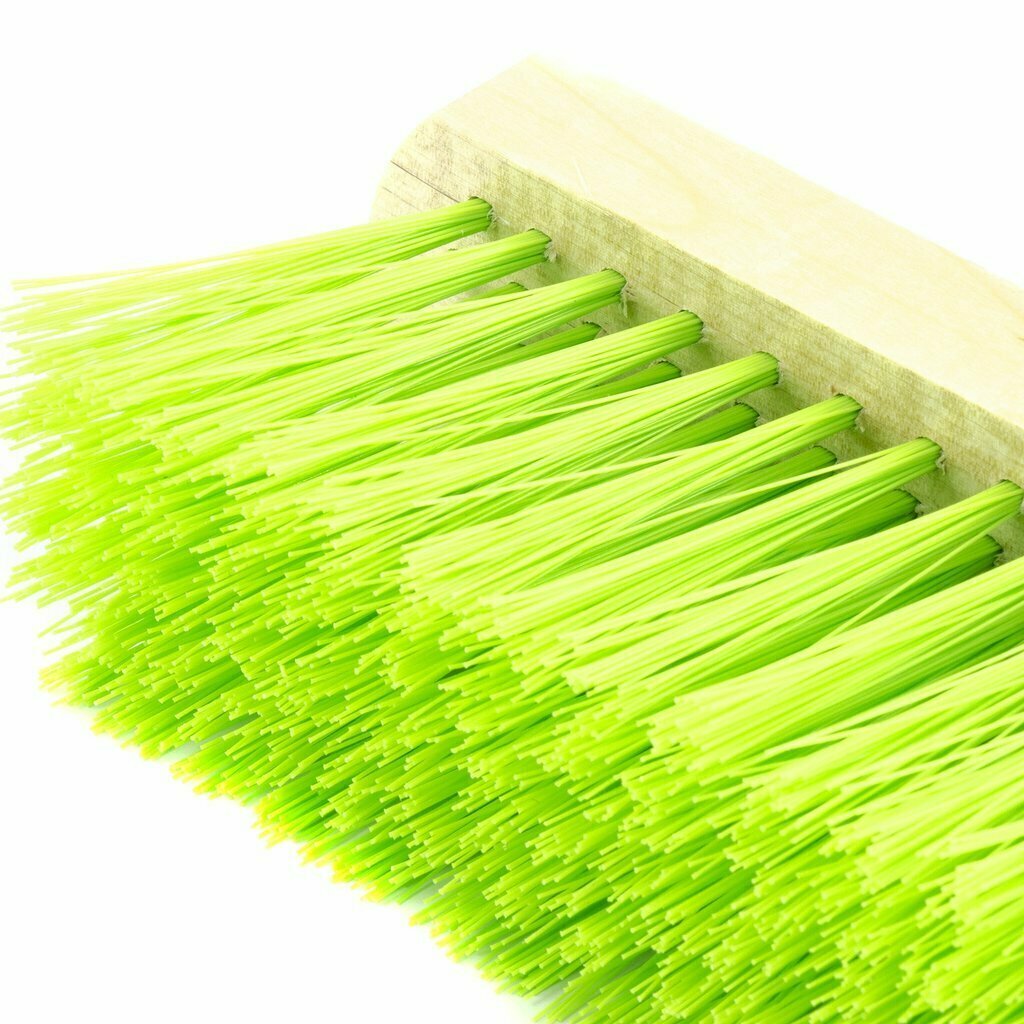 Щетка садовая подходит для широкого спектра хозяйственных работ. Может использоваться для уборки улиц, дворовой территории, подъездов и лестниц, жилых и производственных помещений. Щеткой удобно сметать мелкий мусор, счищать грязь с дорожных и напольных покрытий. Длина щетки — 28 см. Колодка сделана из древесины. В основании закреплена износостойкая синтетическая щетина зелёного цвета. Сверху колодки — тулейка под черенок, который подбирается отдельно.