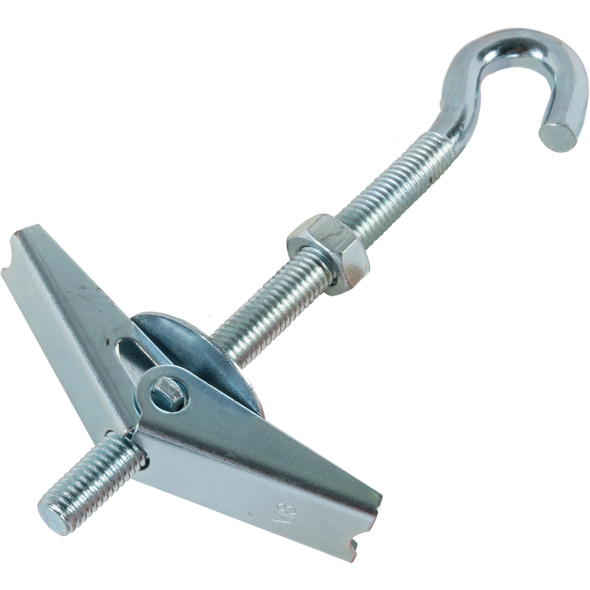Представляет собой шпильку серебристого цвета длиной 75 мм и диаметром 0,8 см с крючком для подвешивания полезной нагрузки. Сложенные лапки анкера автоматически раскрываются при попадании в полость конструкции. Окончательная фиксация производится затягиванием гайки с шайбой по резьбе, нанесённой на шпильку.