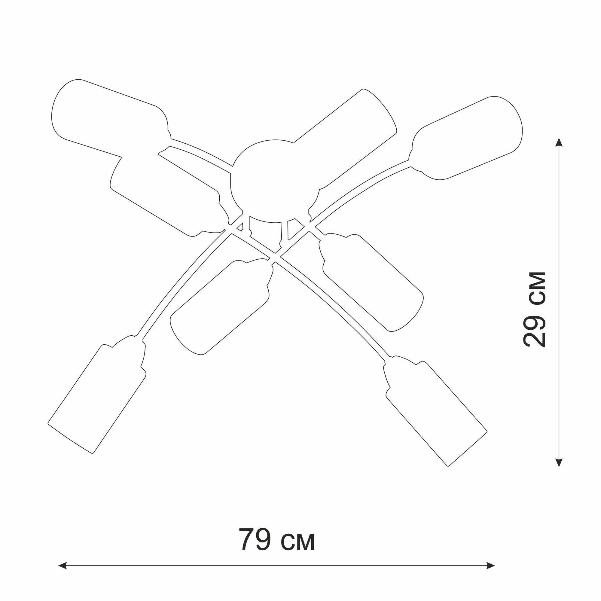 Максимальная мощность лампы составляет 60 Вт, тип цоколя — E27. Модель размером 79 × 29 см выполнена из металла и крепится на планку.