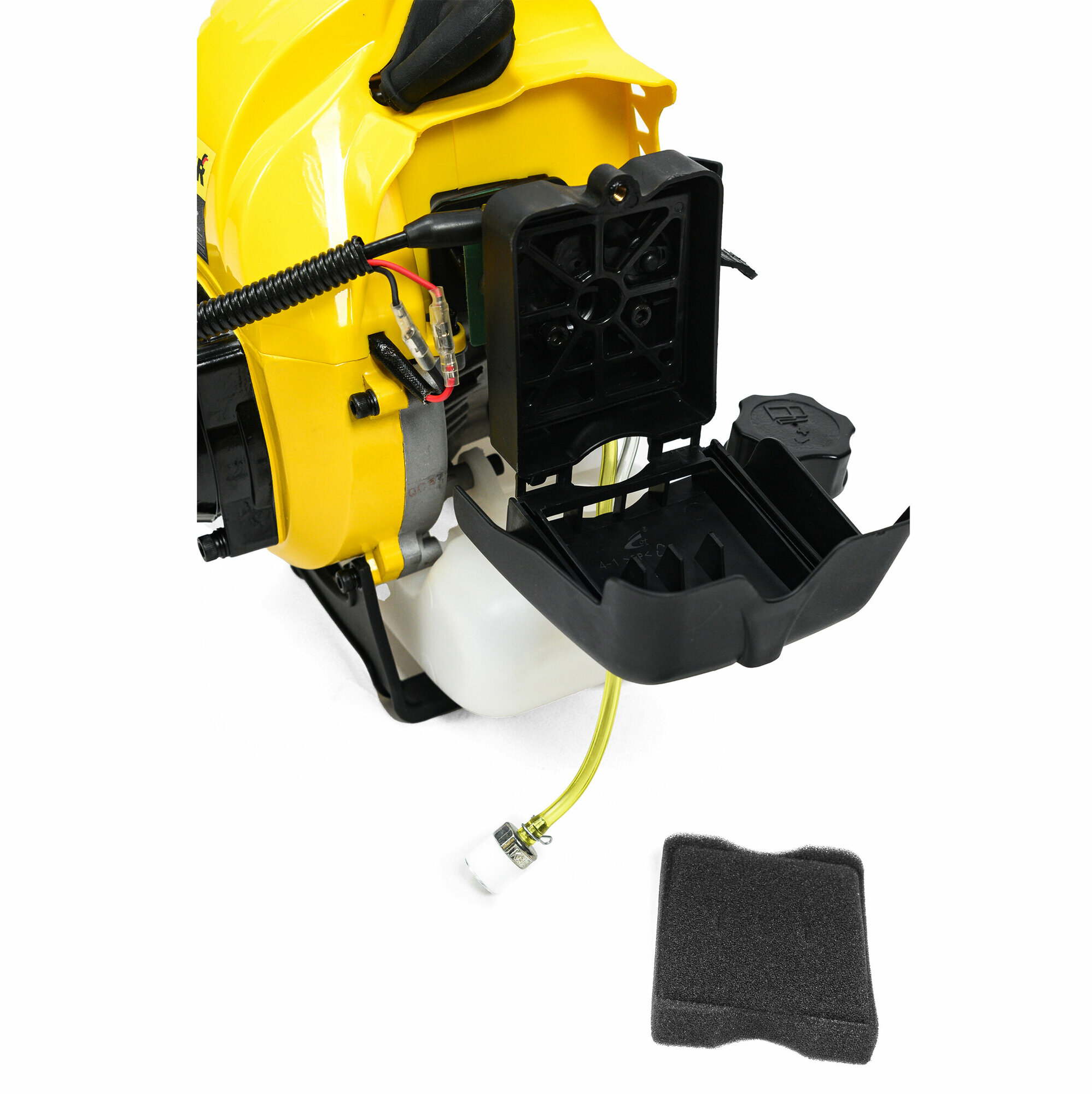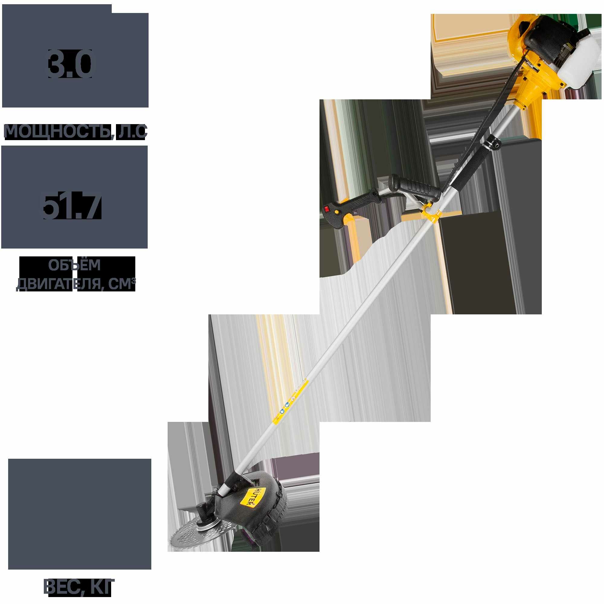 Триммер бензиновый Huter GGT-520Т — это ранцевый инструмент с двухтактным одноцилиндровым двигателем с воздушным охлаждением мощностью 2300 Вт. Предназначен для скашивания и подравнивания травы на газонах, небольших садовых и дачных участках. Оснащен прямой неразборной металлической штангой, эргономичной U-образной ручкой, защитным пластиковым кожухом. Для работы используется нож с шириной захвата 255 мм и леска сечением 2 мм, которая обеспечивает ширину скоса 460 мм. Вес — 9,8 кг.