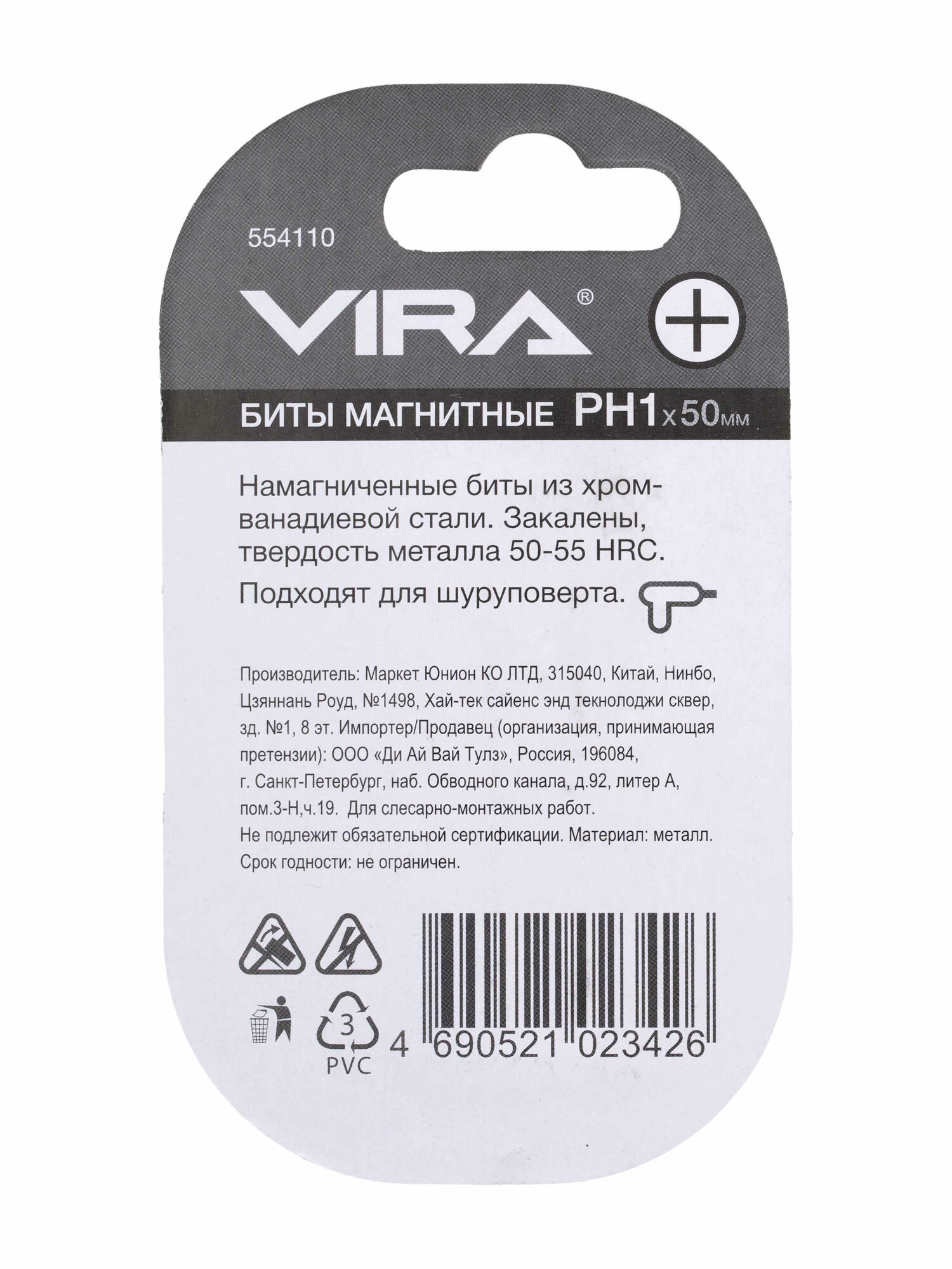 Биты магнитные Vira PH1 50 мм 2 шт. 554110