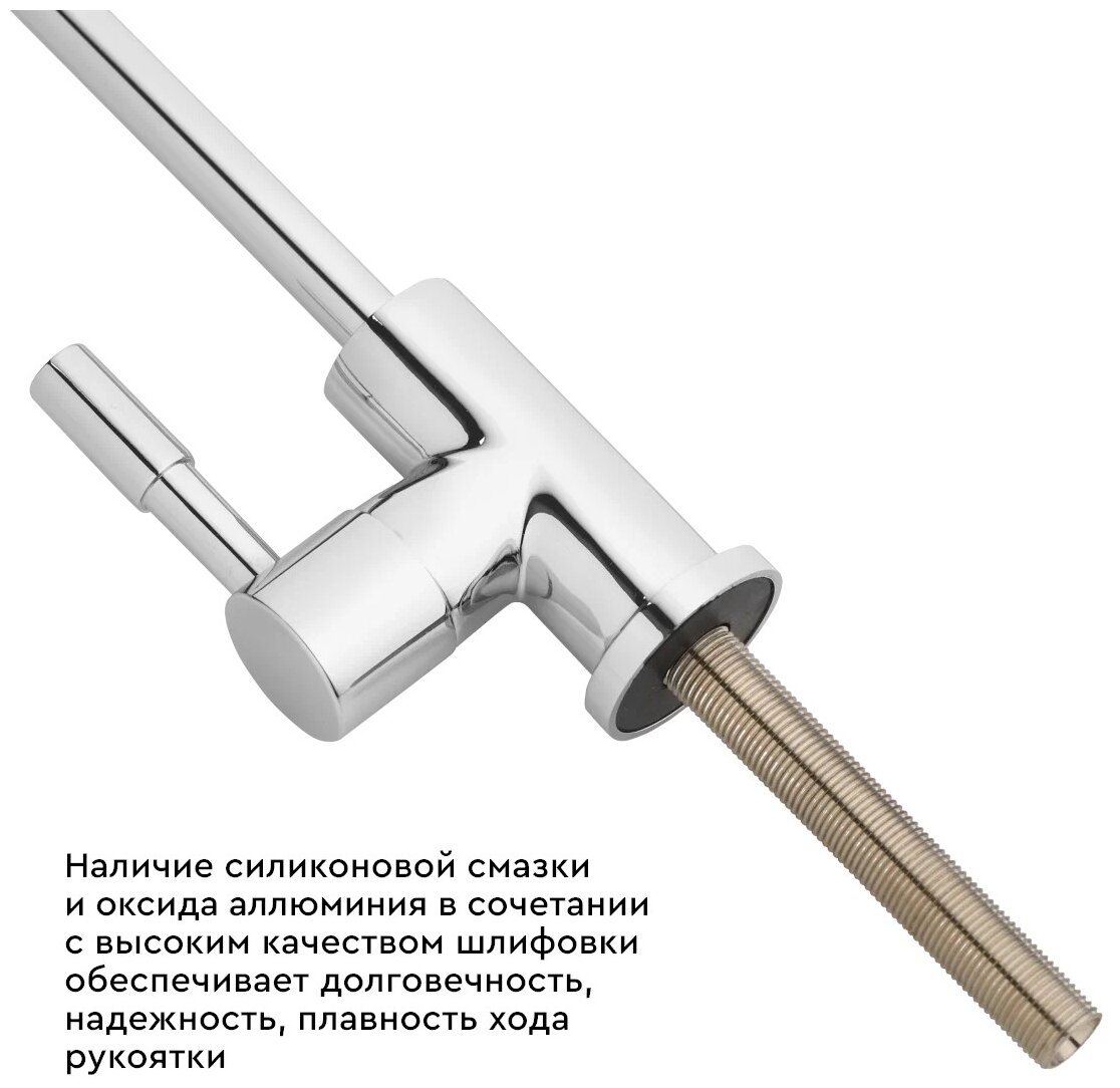 Кран для питьевой воды выполнен в серебристом цвете - подойдет ценителям стиля, тем, кто любит современный и технологичный дизайн.