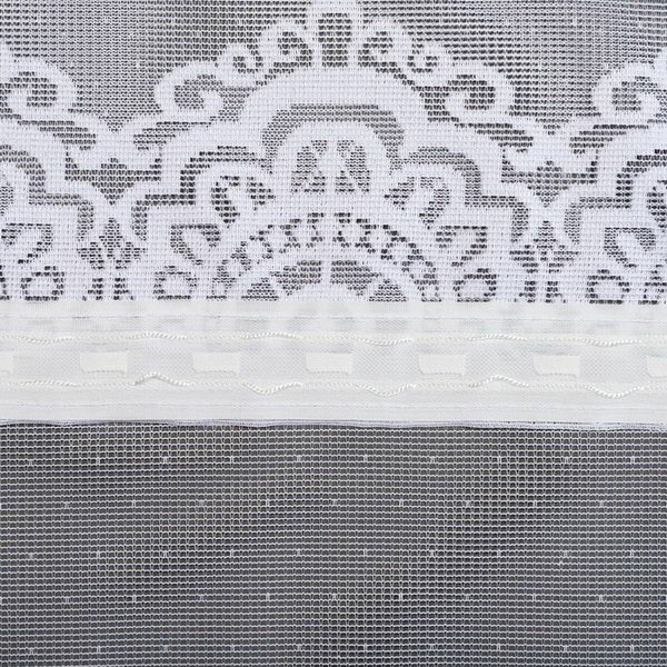 Занавеска «Гера» выполнена в стиле нео-классика и способна подчеркнуть индивидуальный стиль интерьера. Белый цвет универсален, гармонично впишется в дизайн кухни. Прозрачный материал пропускает свет, создавая в помещении уютную атмосферу. Выпускается в размере 285 × 160 см.
