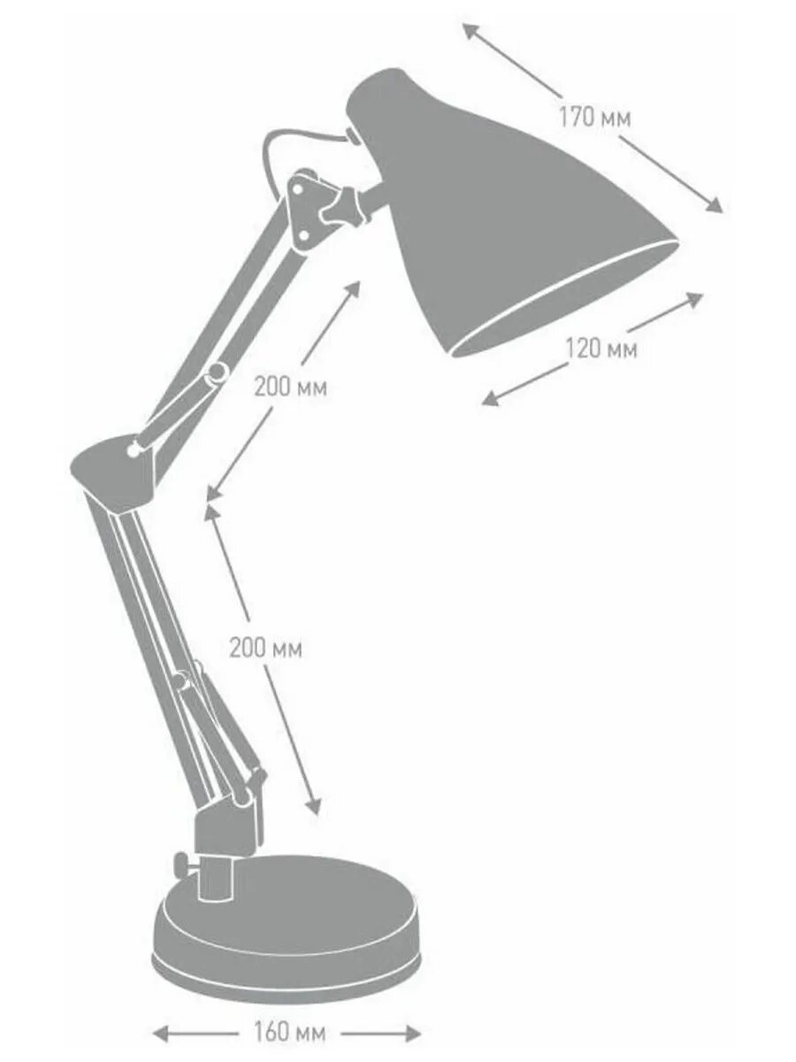 Рабочая лампа настольная KD-331 - универсальная модель, предназначенная для освещения рабочего места, места чтения, учёбы. Может использоваться в офисных интерьерах и дома (даже для освещения в спальне на прикроватных тумбах и декоративной подсветки интерьеров, оформленных в разных стилях). Двухзвенная стойка и основание изготовлены из металла. Плафон необычной формы также изготовлен из металла. Матовое, не глянцевое окрашивание корпуса придаёт светильнику дополнительный шарм и современный стиль. Светильник можно использовать с любыми типами ламп, в том числе со светодиодными. Устойчивое и утяжелённое основание защищает светильник от опрокидывания. Плафон надёжно фиксируется в нужном положении винтовыми зажимами. Есть возможность регулировки высоты и угла наклона плафона. С выключателем на проводе.