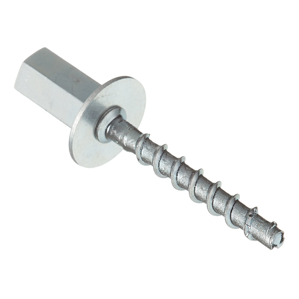Анкер-шуруп Walraven M8/10 размером 6 мм и длиной 55 мм сделан из стали и предназначен для работы с бетонными основаниями. После вкручивания над поверхностью остается головка с внутренней резьбой.