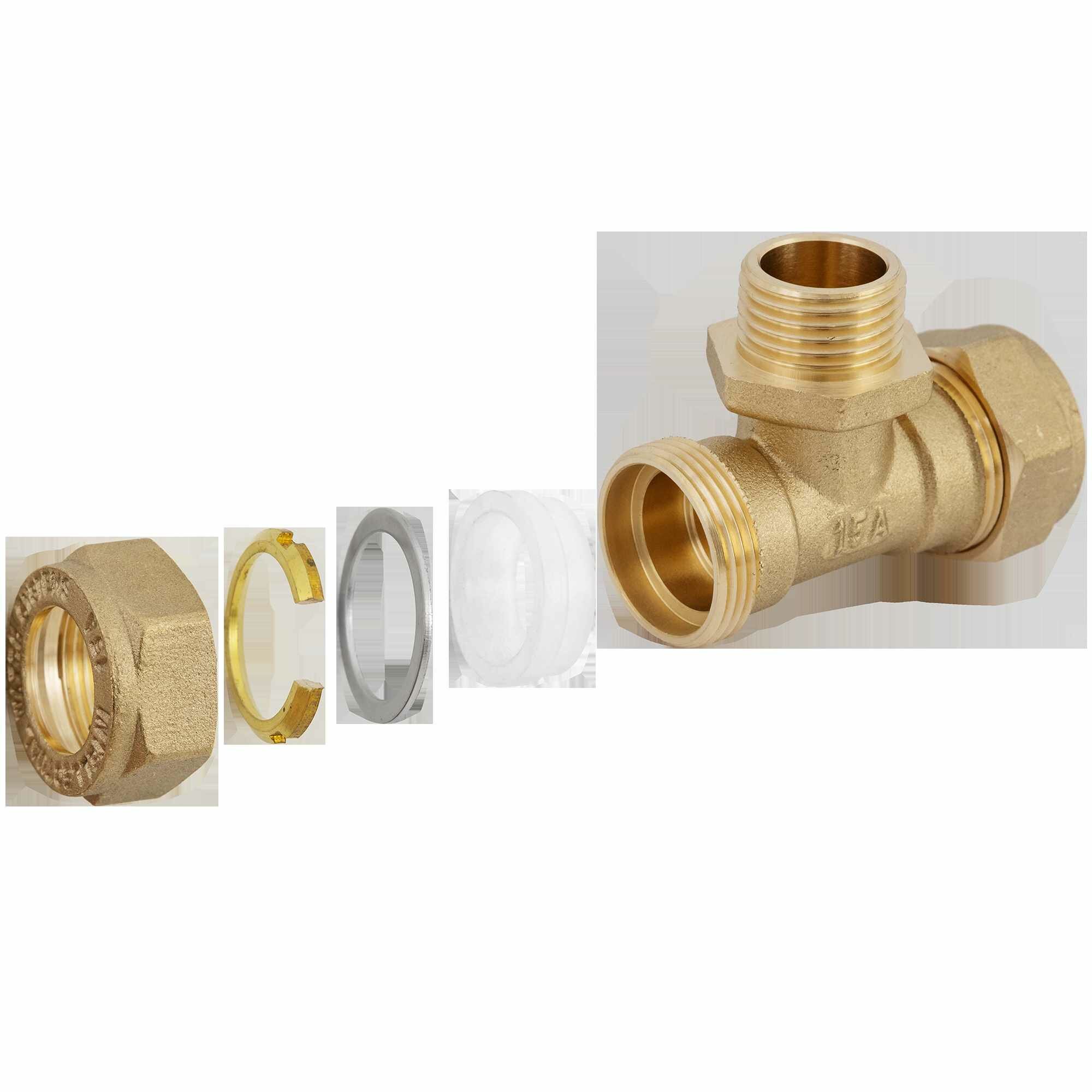Тройник обжимной Stahlmann наружная резьба 15х1/2"х1 латунь