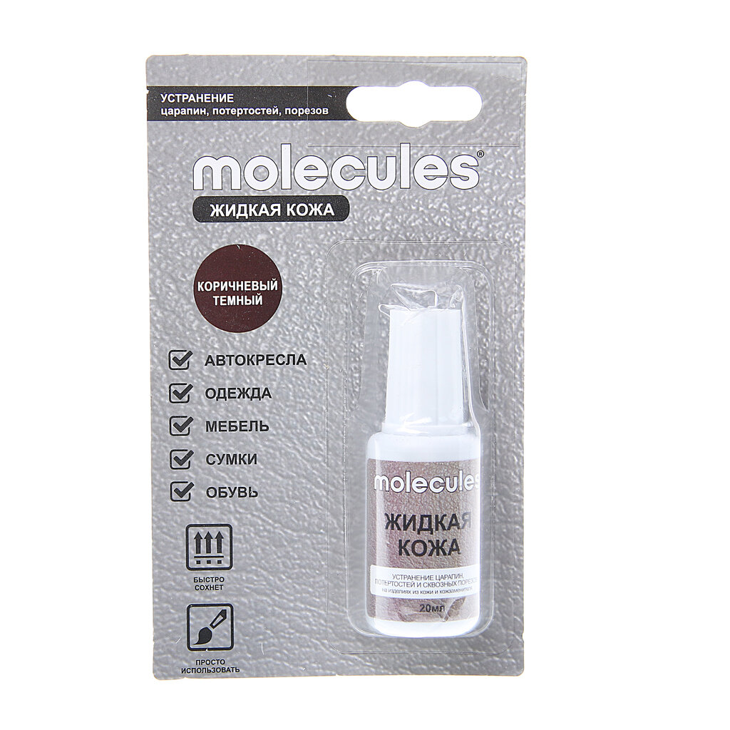 Средство для реставрации кожаных изделий Molecules «Жидкая кожа» цвет тёмно-коричневый