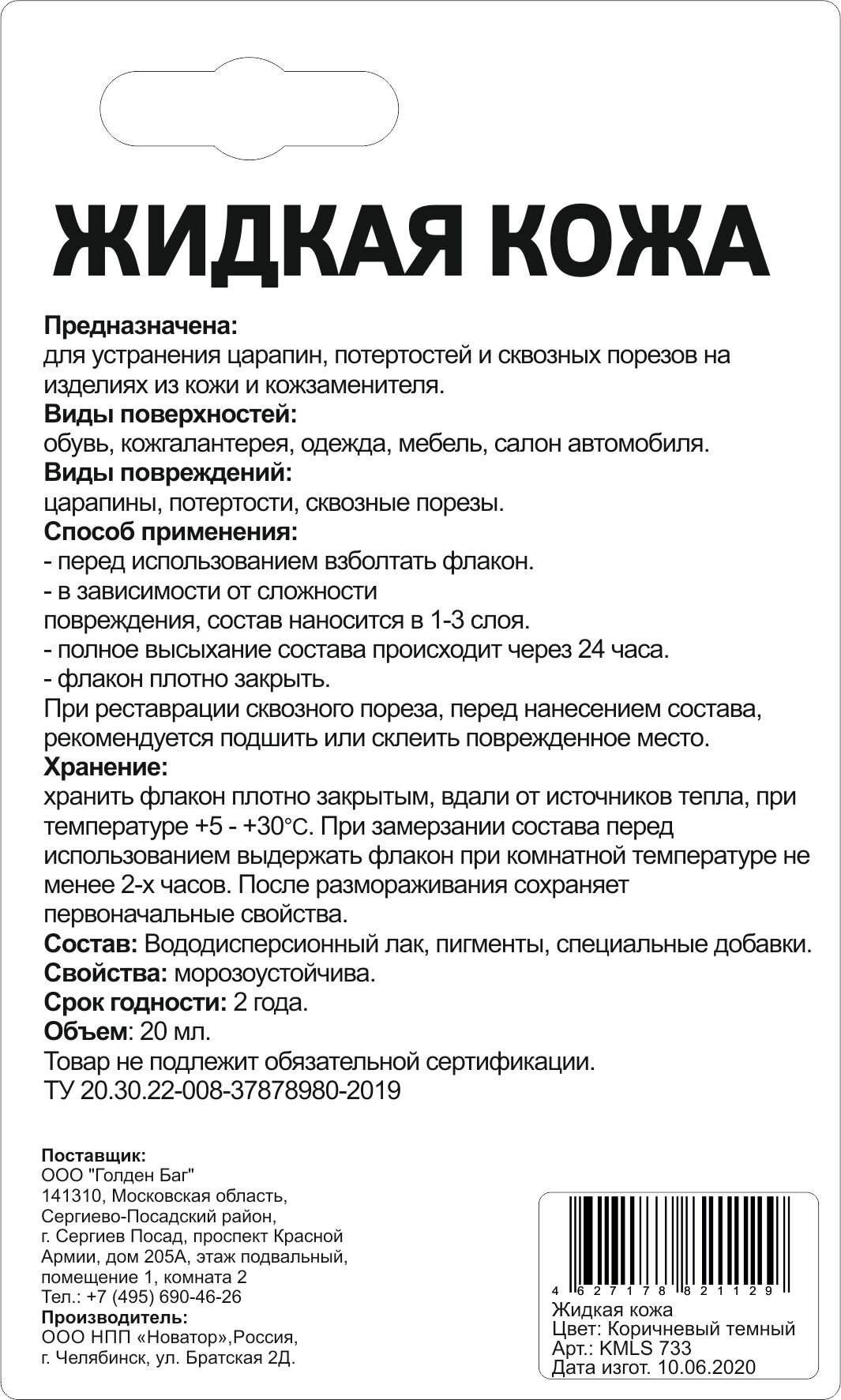 Средство представляет собой жидкий полимерный состав на основе вододисперсионного лака, цвет — темно-коричневый. Продается во флаконе объемом 20 мл. Срок годности состава — 2 года. Произведено в России.