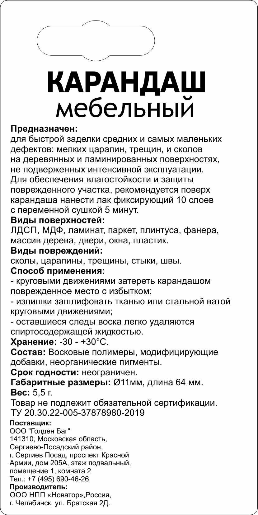 Длина карандаша — 64 мм. Страна производства — Россия.