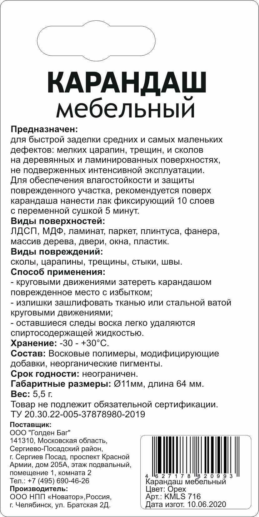 Сервис сравнения цен СкидкаГИД предлагает сравнить цены на товар «Карандаш для реставрации трещин Molecules цвет орех 5.5 г KMLS716»