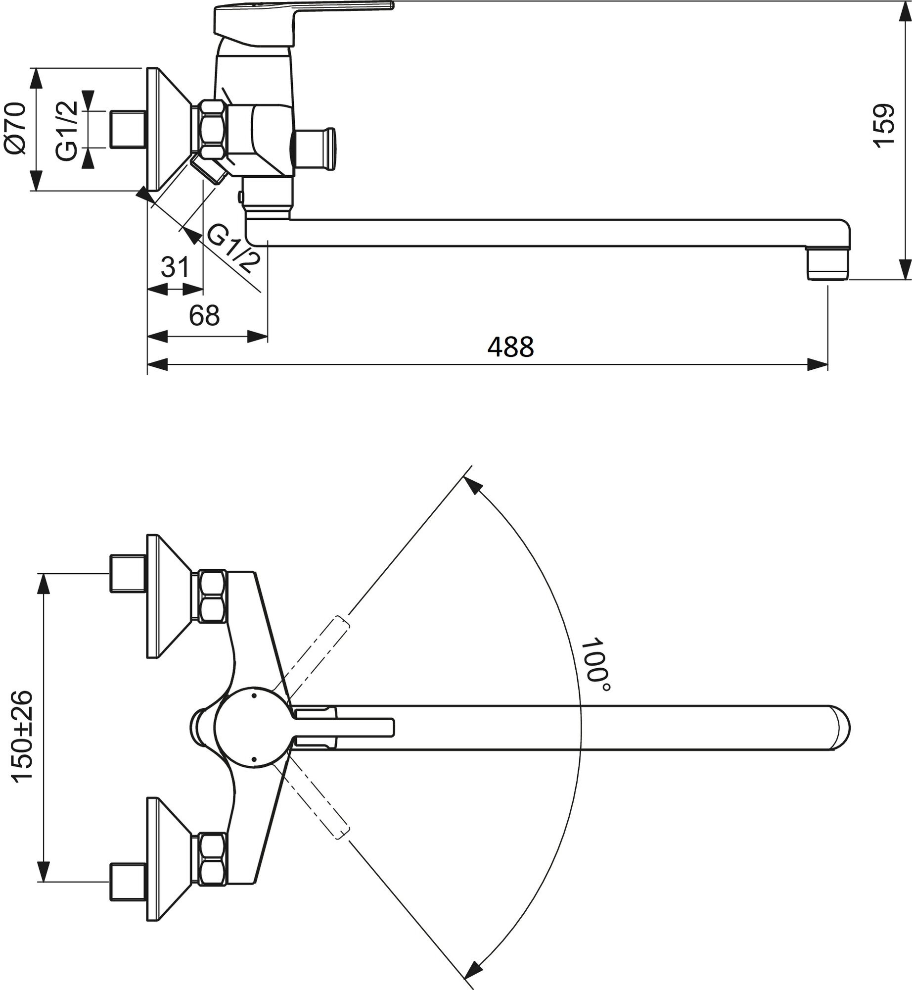 Смеситель для ванны универсальный Ideal Standard Idealstyle однорычажный цвет хром