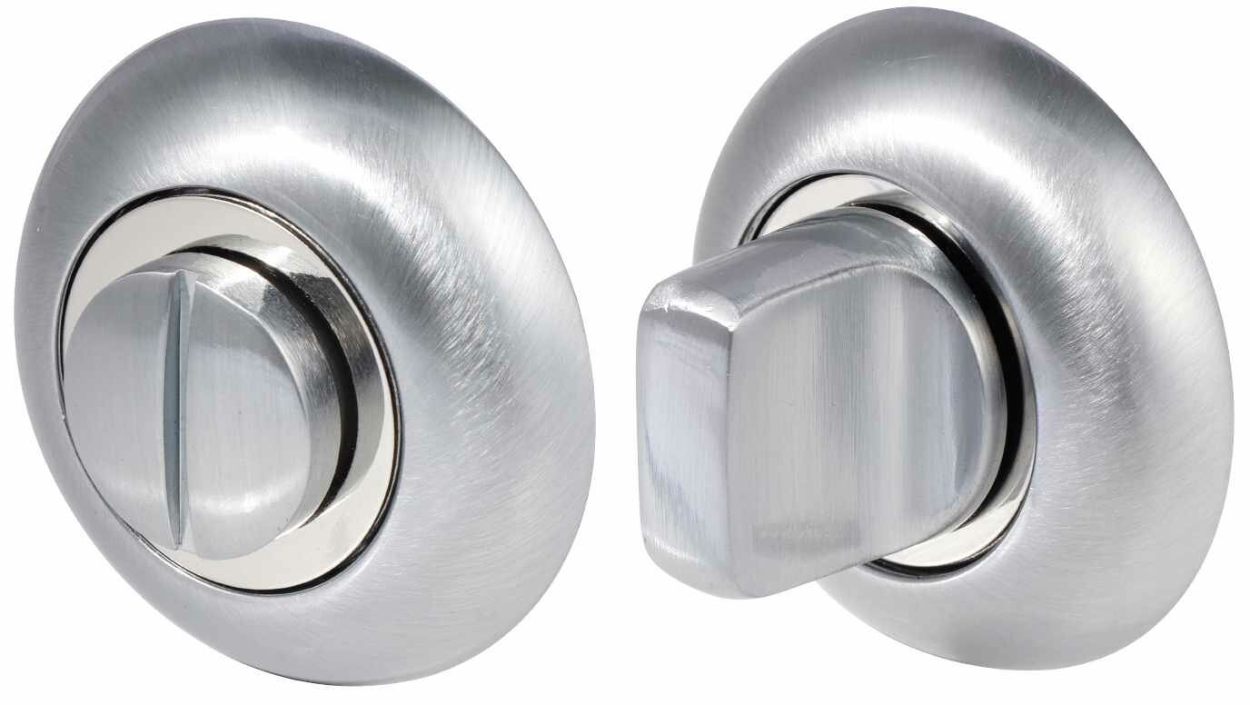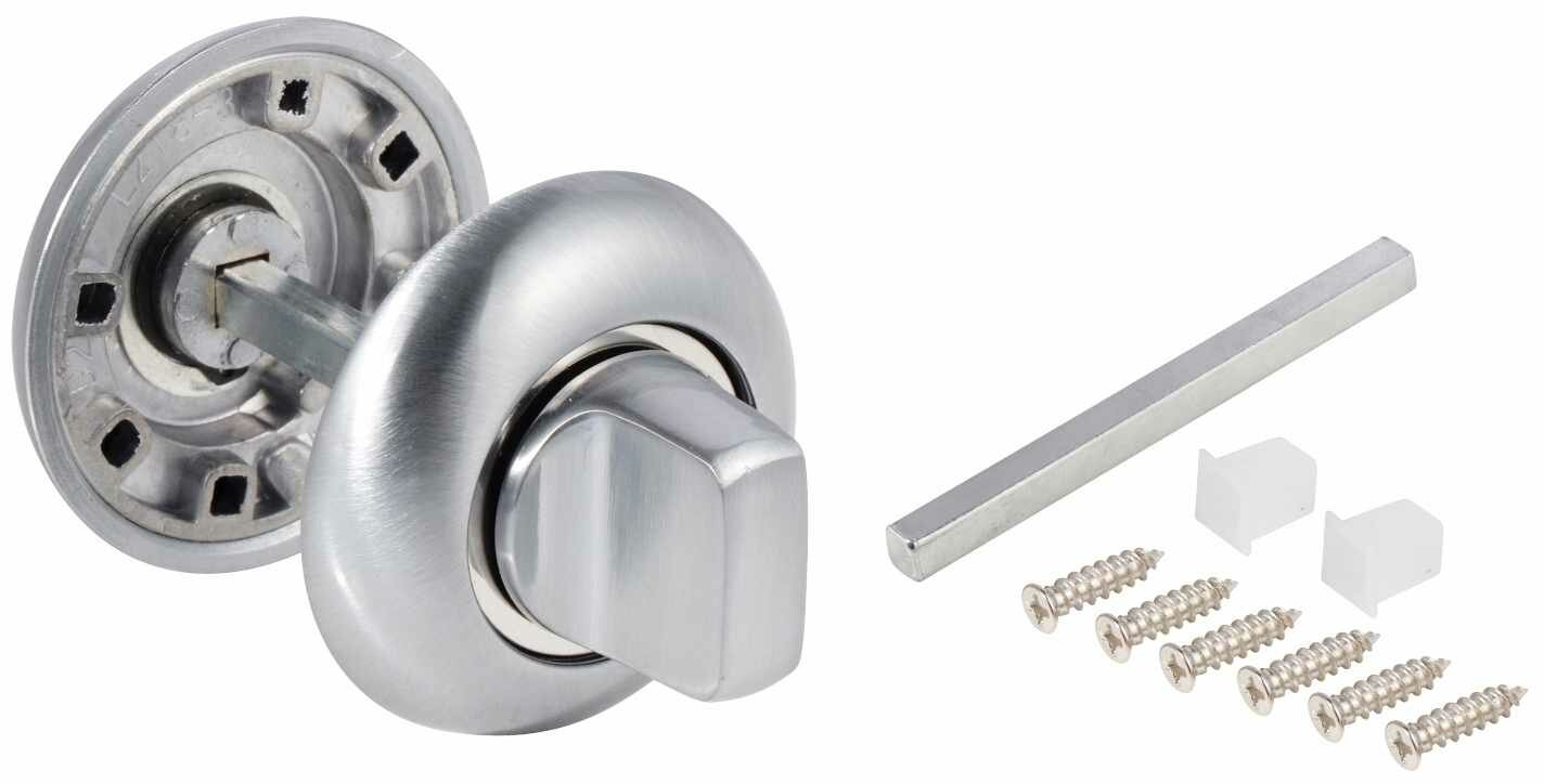 Форма накладки вокруг фиксатора круглая. Цвет изделия — «матовый хром». Обычно завертки выбираются в цвет двери. Страна производства товара — Россия.