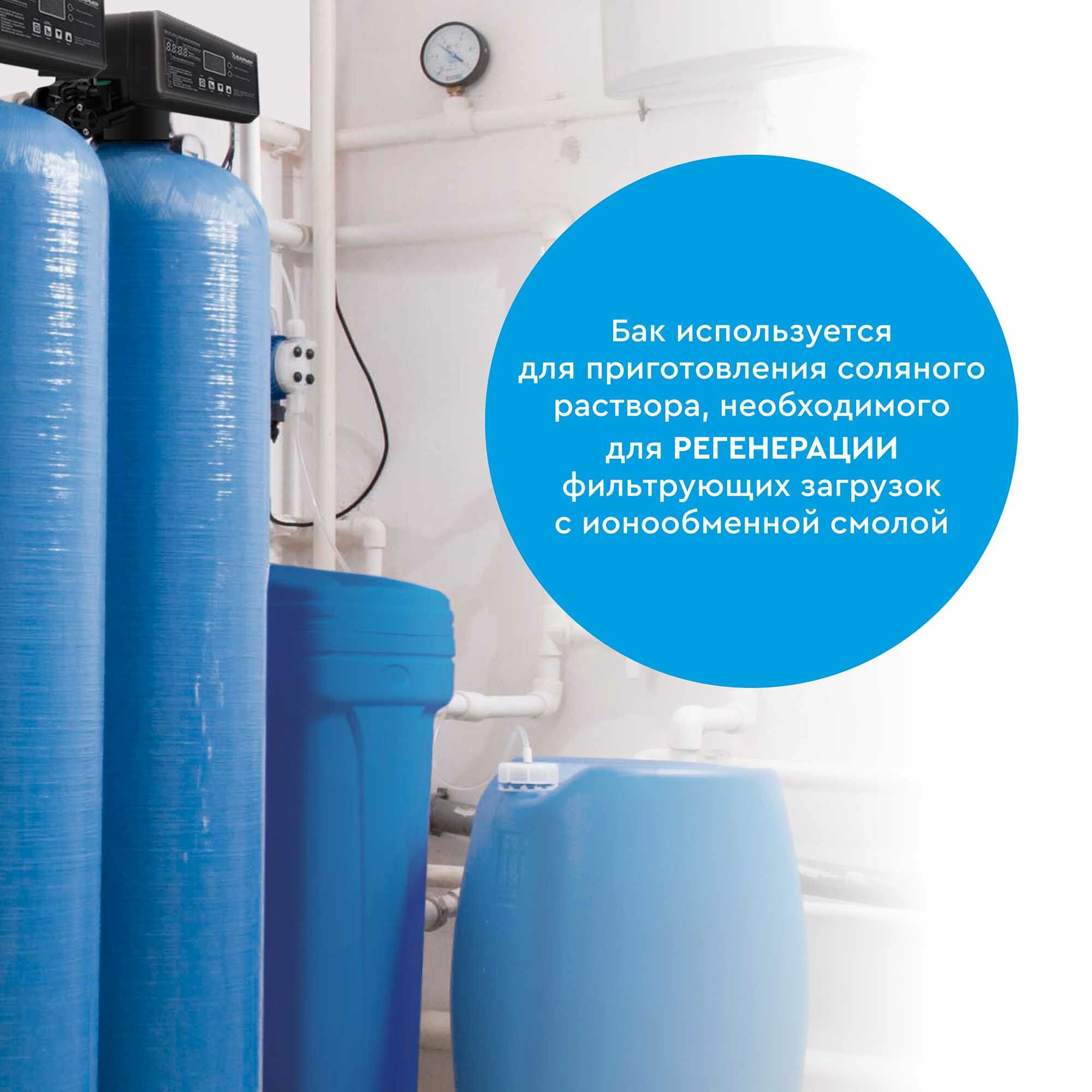 Солевой бак необходим для приготовления и хранения раствора поваренной соли для регенерации фильтрующей загрузки умягчителей и многофункциональных фильтров.
