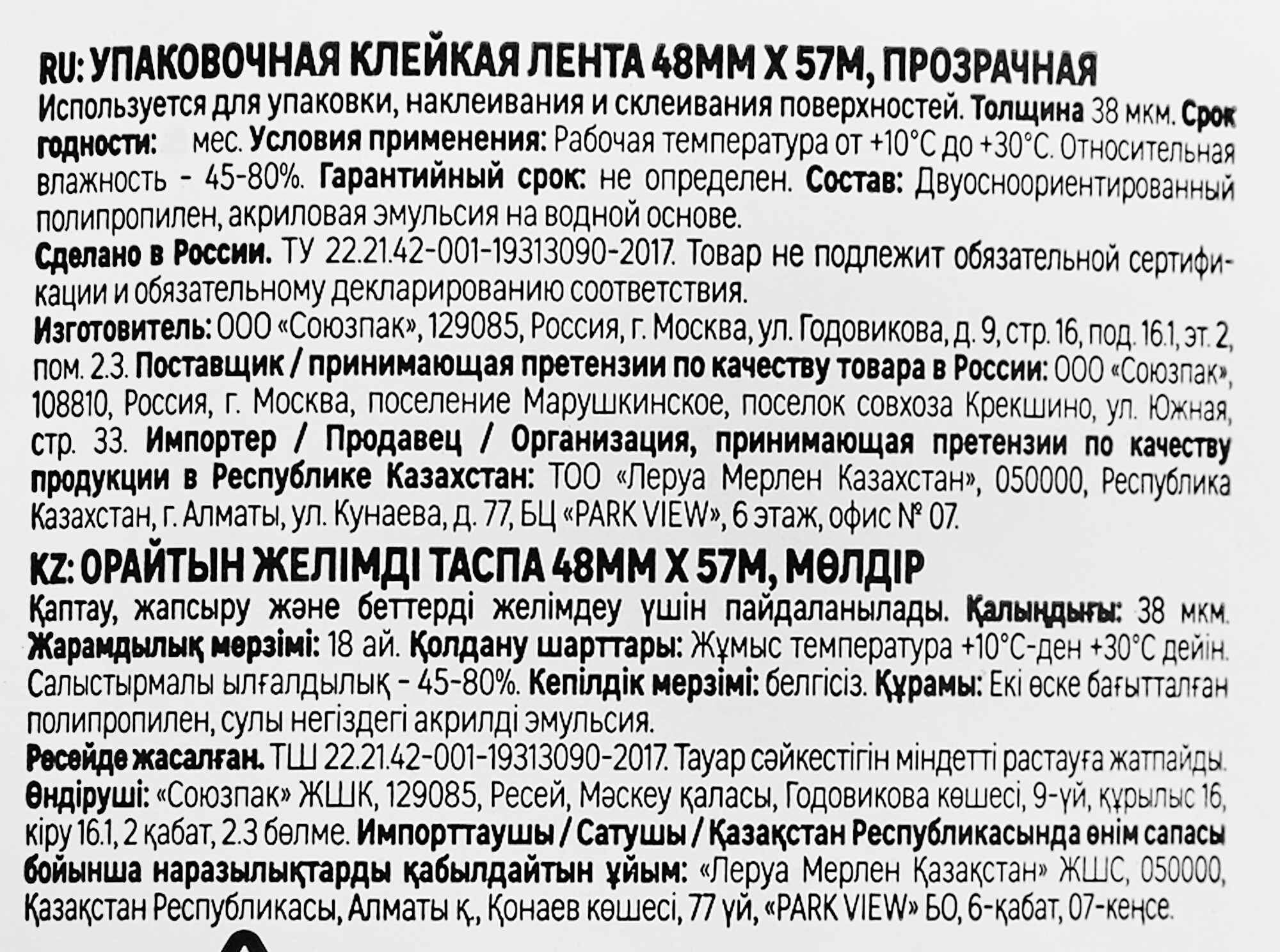 Тип товара: Клейкая лента