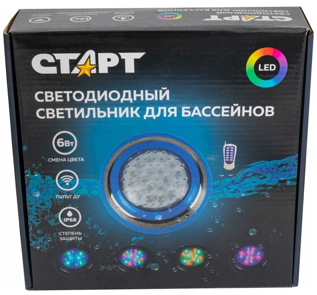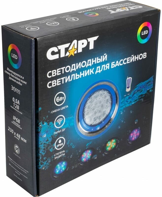 Светильник СТАРТ 6LED Подводный отличается большой энергоэффективностью. 6 мощных светодиодов создают яркое освещение при минимальном потреблении электроэнергии. Светодиоды проработают не менее 30000 часов. При строгом следовании правилам эксплуатации осветительный прибор прослужит вам не один год.