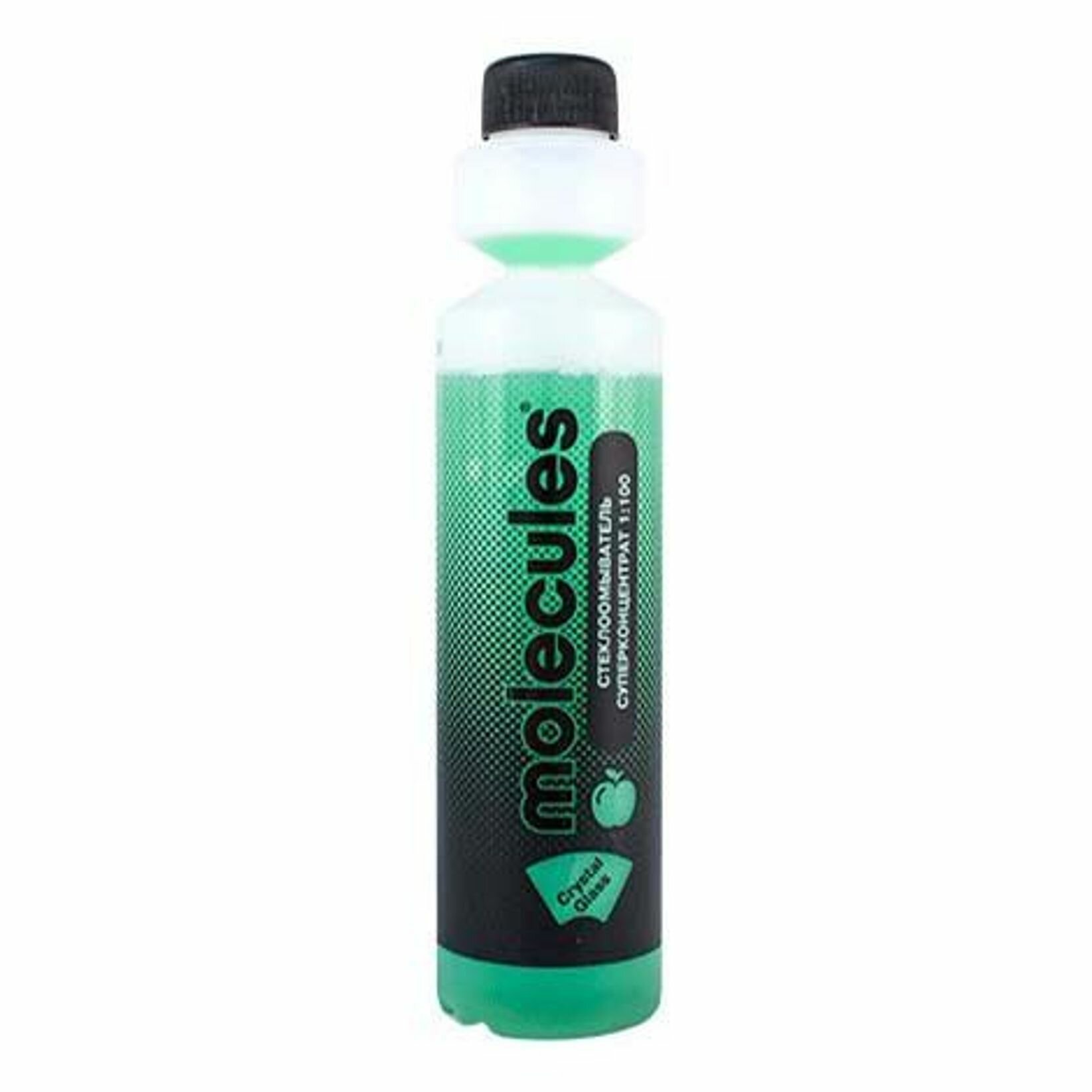 Стеклоомыватель суперконцентрат Molecules - высококонцентрированная добавка в бачок стеклоомывателя с ароматом зеленого яблока. Быстро и эффективно удаляет со стекол дорожную грязь, следы от насекомых, масляную пленку, силикон, не оставляя разводов и бликов. Улучшает обзор, повышая безопасность движения. Экономичен в использовании, одного флакона концентрата достаточно для приготовления 25 л жидкости стеклоомывателя. Препятствует образованию известковых отложений на форсунках стеклоомывателя. Способствует плавной работе щеток стеклоочистителя. Не содержит фосфатов. Совместим с водой любой жесткости. Безопасен для лакокрасочного покрытия, резиновых и пластиковых элементов. Допускается использовать как для получения летнего стеклоомывателя при разбавлении с водой, так и для добавления к зимнему стеклоомывателю для улучшения моющей способности стеклоомывающей жидкости.