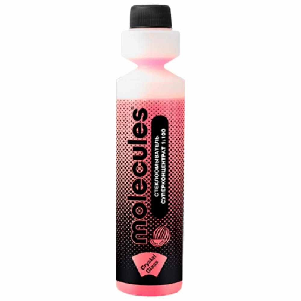 Стеклоомыватель суперконцентрат 1:100 Molecules - высококонцентрированная добавка в бачок стеклоомывателя с ароматом арбуза. Быстро и эффективно удаляет со стекол дорожную грязь, следы от насекомых, масляную пленку, силикон, не оставляя разводов и бликов. Улучшает обзор, повышая безопасность движения. Экономичен в использовании, одного флакона концентрата достаточно для приготовления 25 л жидкости стеклоомывателя. Препятствует образованию известковых отложений на форсунках стеклоомывателя. Способствует плавной работе щеток стеклоочистителя. Не содержит фосфатов. Совместим с водой любой жесткости. Безопасен для лакокрасочного покрытия, резиновых и пластиковых элементов. Допускается использовать как для получения летнего стеклоомывателя при разбавлении с водой, так и для добавления к зимнему стеклоомывателю для улучшения моющей способности стеклоомывающей жидкости.