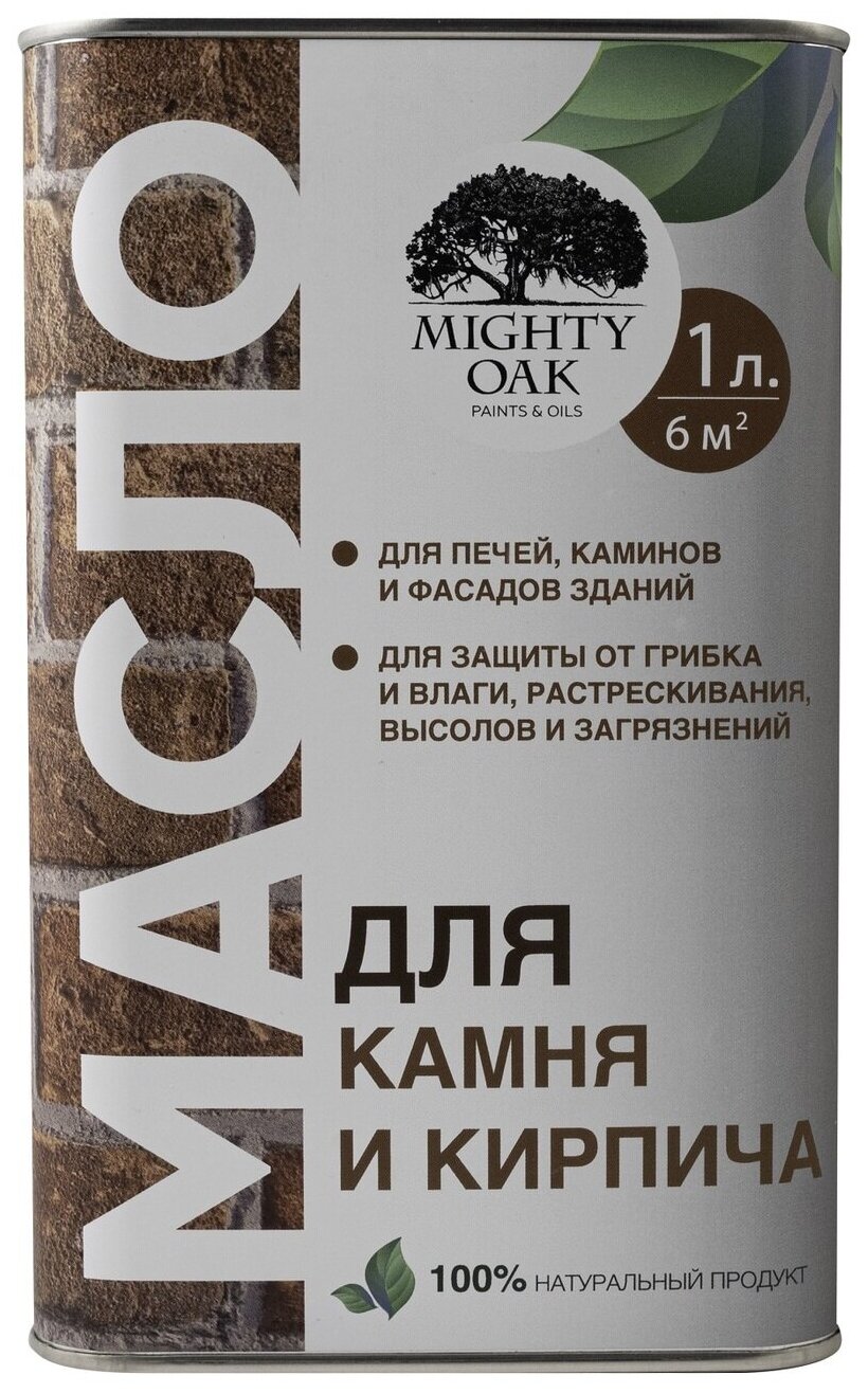 Масло по камню и кирпичу Mighty Oak используется для защиты поверхностей из камня, бетона, кирпича от воздействия неблагоприятных факторов окружающей среды. Область применения — фасады и цоколи зданий, заборы, подпорные стенки, печи, камины.
