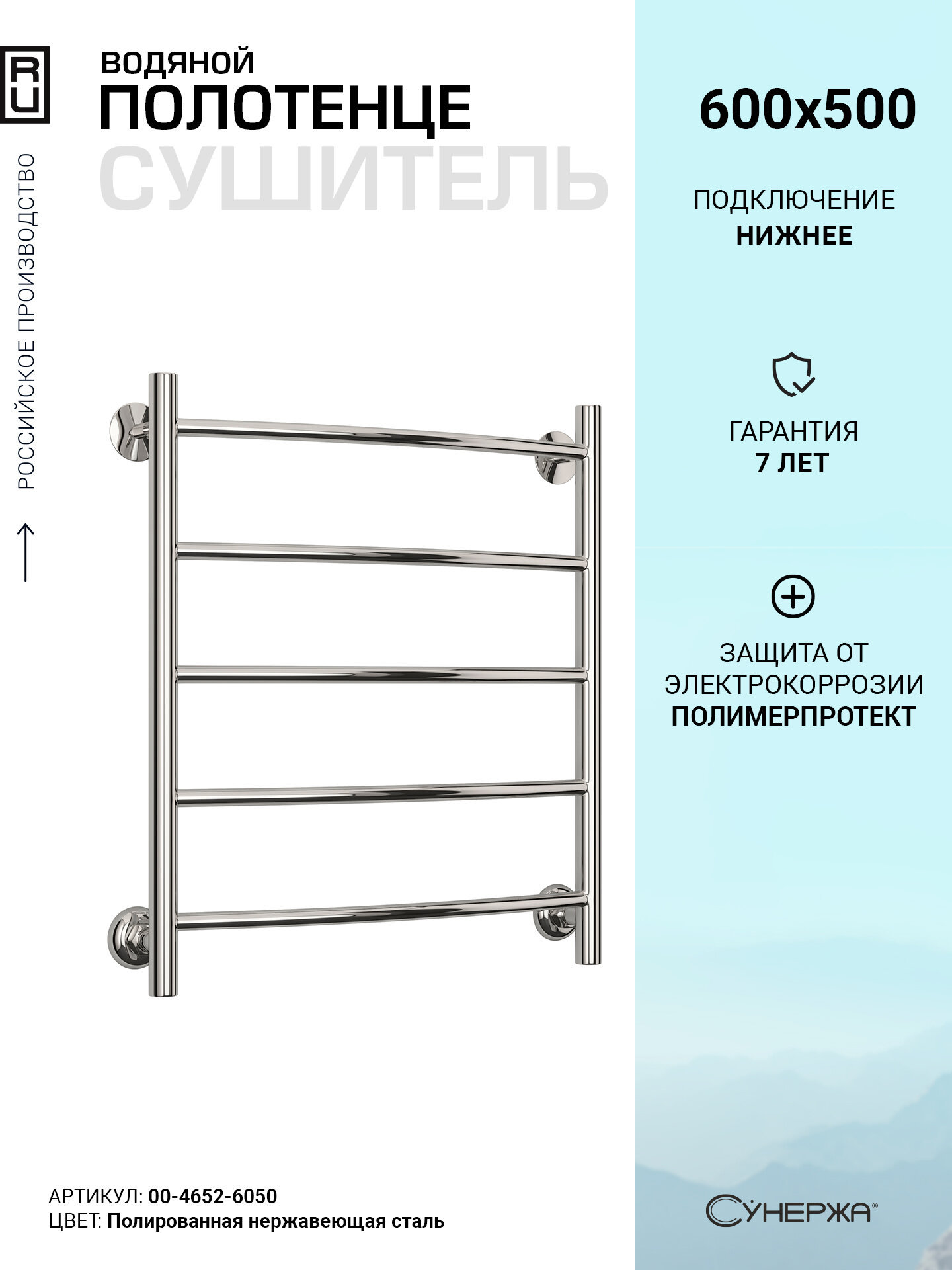 Полотенцесушитель водяной Сунержа ВПС-52П 80x50 мм нержавеющая сталь c полимерным покрытием 3/4" цвет хром