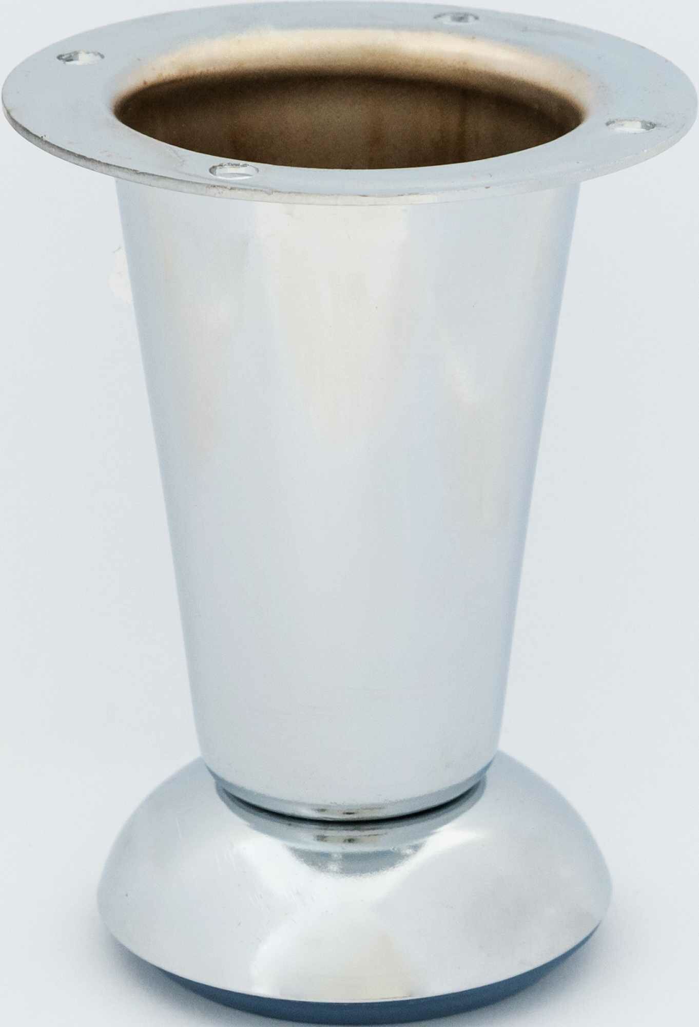 Ножка мебельная №0070 — устойчивая конусообразная опора с фиксированной высотой (10 см). Нижняя часть укомплектована специальной пластиковой вставкой, которая предотвращает повреждение напольного покрытия. В верхней предусмотрены 4 отверстия для винтового крепления к основе. Изделие подходит для всех видов мебели, выдерживает нагрузку до 35 кг, изготовлено из стали. Цвет — серебристый.