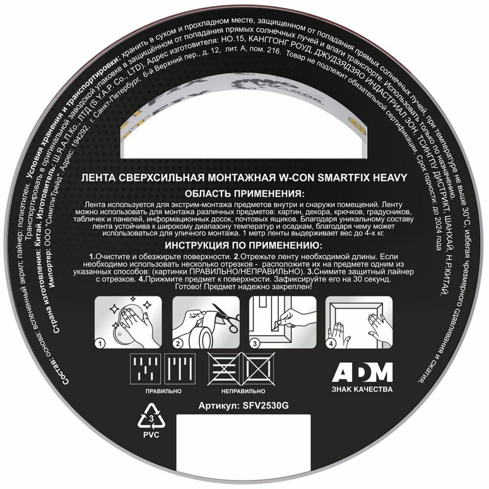 Монтажная лента SmartFix всепогодная 2.5х300 см W-CON