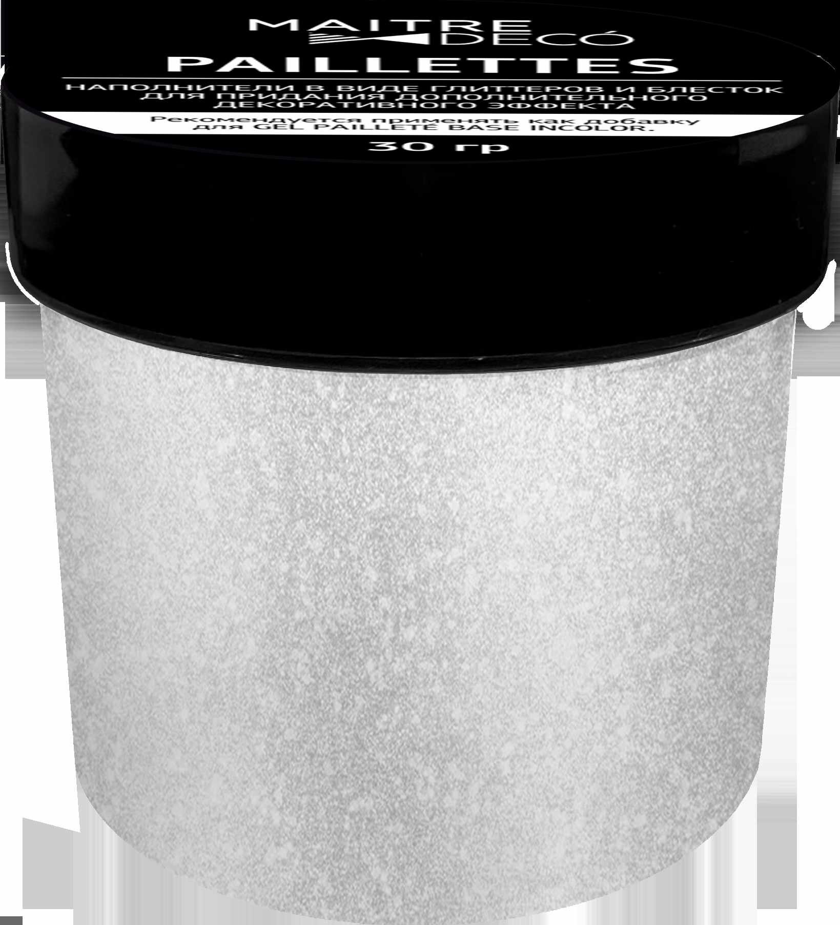 Наполнители в виде глиттеров и блесток Maitre Deco Paillettes Argent – серебристый глиттер размером 0,2 мм для придания дополнительного декоративного эффекта другим материалам, что подчеркнет эксклюзивность вашего интерьера и добавит особого шарма.