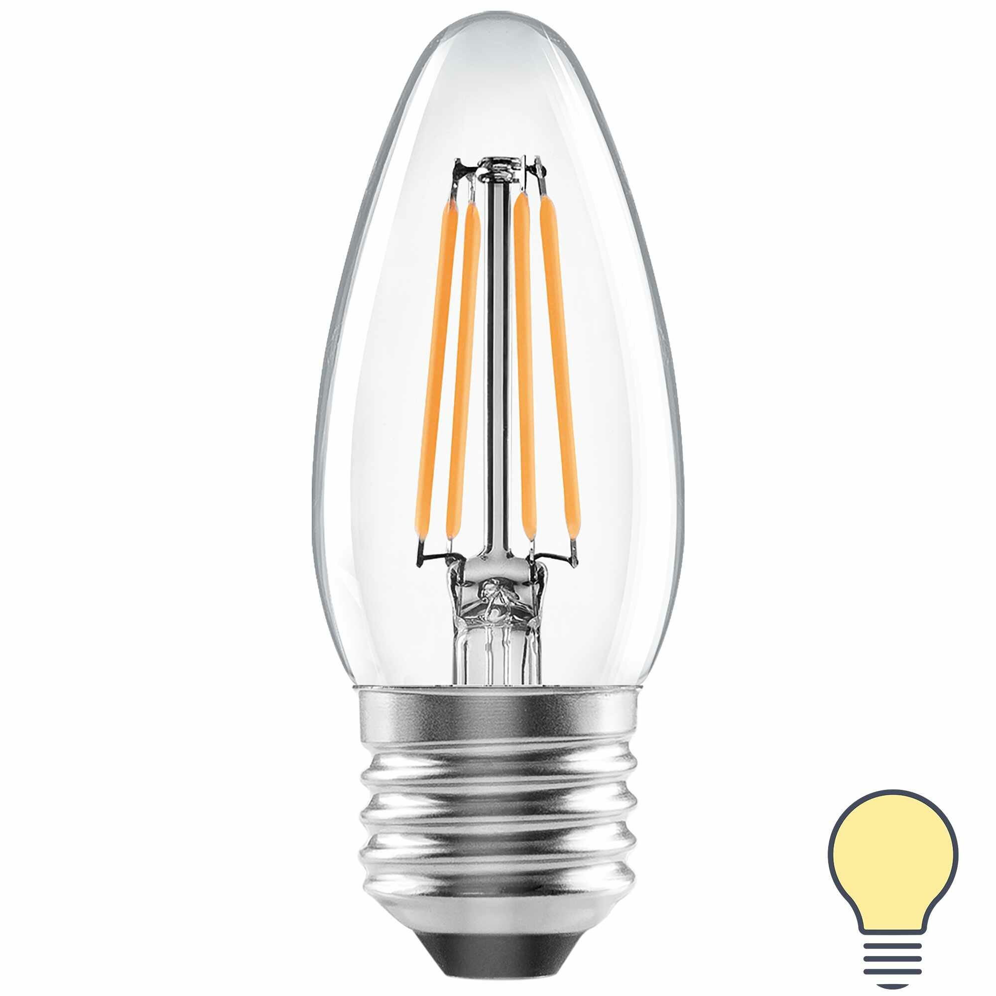 Лампа светодиодная Lexman E27 220-240 В 5 Вт свеча прозрачная 600 лм теплый белый свет