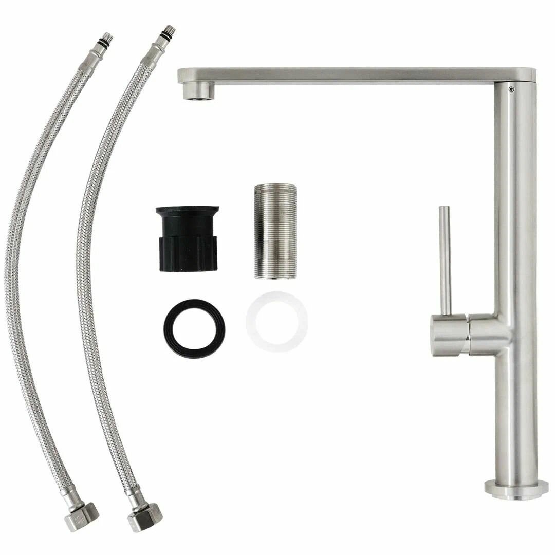 Однорычажный смеситель для кухонной мойки с высоким Г-образным поворотным изливом из коллекции TORN изготовлен из высококачественной нержавеющей стали. Нетривиальный дизайн, и уверенность в качестве и безопасности. Фирменный картридж Osgard 25 мм с антишумовой сеткой. Специальный пластиковый аэратор с функцией самоочищения имеет более долгий срок службы, делает струю мягкой и ровной и способствует уменьшению расхода воды на 10%.