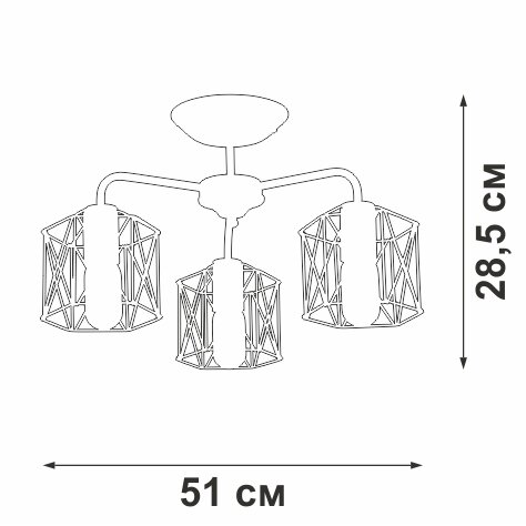 Максимальная мощность лампы составляет 40 Вт, тип цоколя — E27. Модель размером 51 × 28,5 см выполнена из металла и крепится на планку.