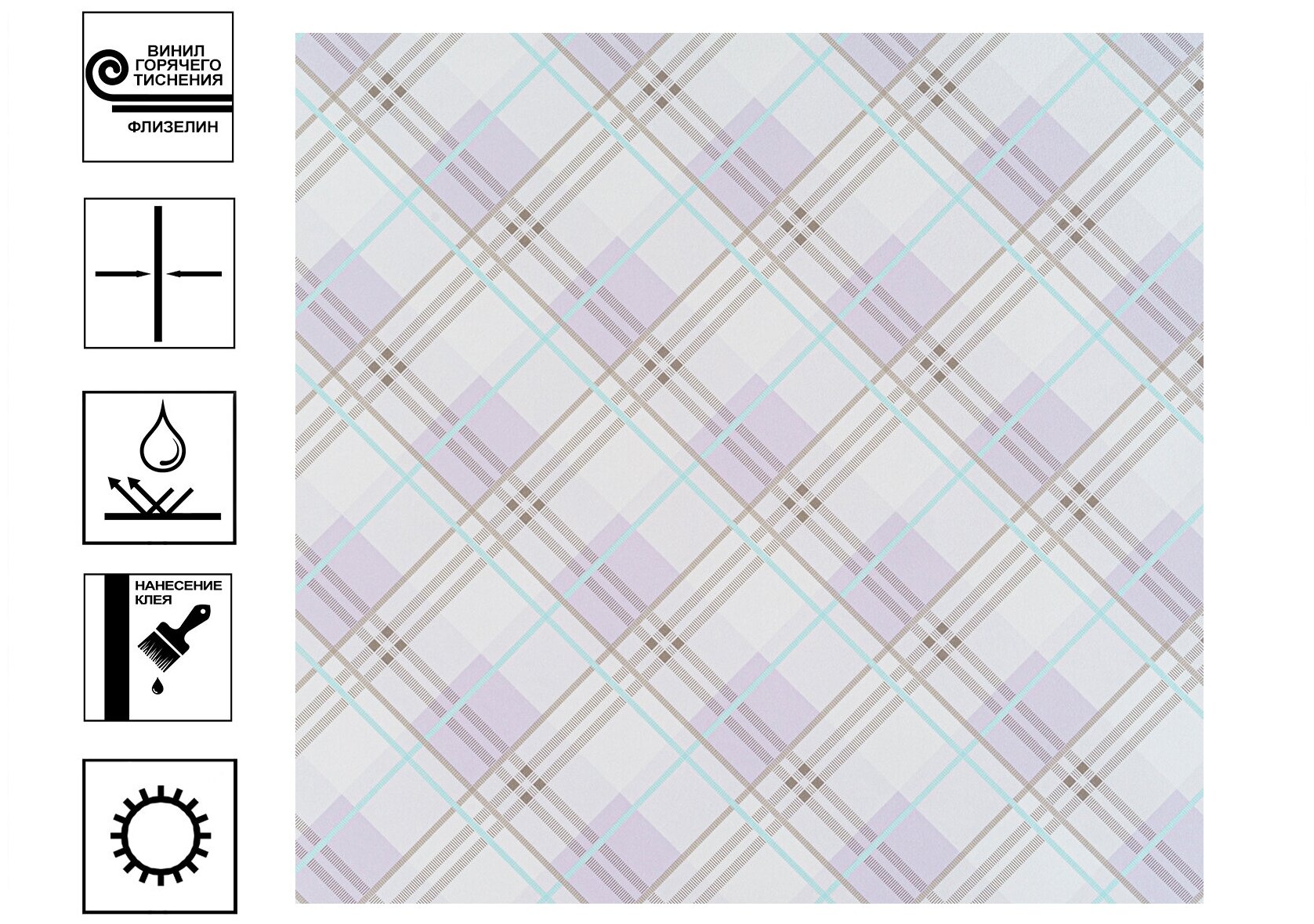 Приятный фиолетовый цвет хорошо сочетается со многими мебельными гарнитурами, предметами декора и другими отделочными материалами. Флизелиновые обои имеют приятную на ощупь поверхность со структурным рельефом, верхний слой — винил горячего тиснения. Размер рулона — 10 × 1,06 м.