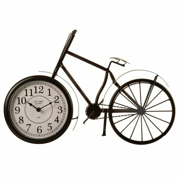**Часы настольные Atmosphera Retro Factory** — оригинальное устройство в форме велосипеда, способное стать настоящим украшением для многих интерьеров. Предназначены для установки на стол. Отлично подходят для кухни, спальни и зала. Секундная стрелка отсутствует. Питание осуществляется от одной батарейки типа АА. Циферблат закрыт прозрачной вставкой, которая не искажает изображение цифр и хорошо пропускает свет, не ограничивая видимость.