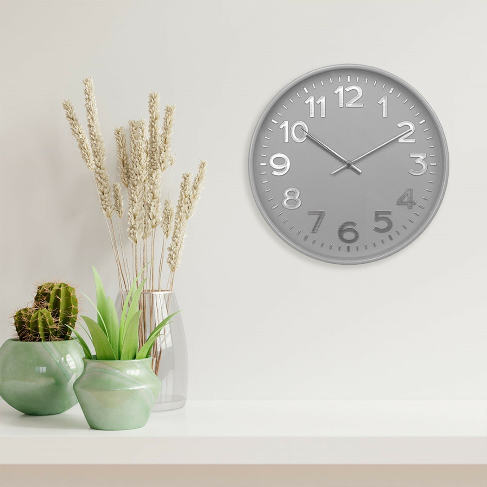 **Настенные часы «Troykatime»** выполнены в классическом стиле и серой гамме. Актуальны для интерьеров современных помещений. Циферблат оснащен крупными арабскими цифрами. Время отображается при помощи трех стрелок (часовой, минутной и секундной).