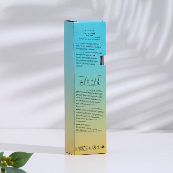 | Инструкция по применению | Открыть упаковку, извлечь бутылочку и палочки. Достать пробку и вставить палочки. Установить на ровную, недоступную для детей и питомцев поверхность. |