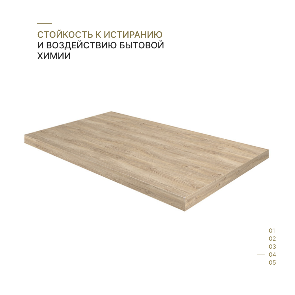 **Столешница Дуб мадуро** обладает текстурированным рисунком, визуально напоминающим шлифованную и лакированную древесину. Изделие влагостойкое, его можно мыть губкой с применением неабразивных средств бытовой химии. Матовая поверхность неприхотлива в эксплуатации. Ровные края удобны для распиливания.