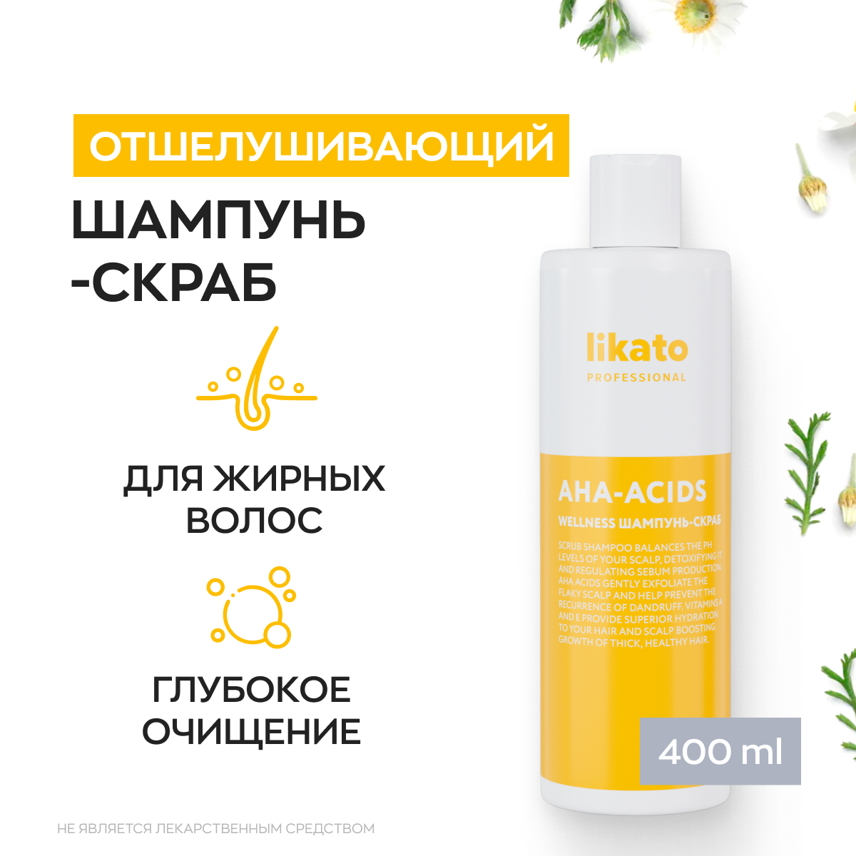 | Активные компоненты | Несмотря на свое название, шампунь не имеет в своем составе скрабирующих частиц. Все действие по глубокому очищению осуществляют фруктовые кислоты. Они помогают регулировать работу сальных желез, способствуют обновлению волосяных фолликул, оказывают антибактериальное и противовоспалительное действие. Состав: aqua, sodium coco-sulfate, cocamidopropyl betaine, sodium cocoamphoacetate, cocamide dea, polyquaternium-7, niacinamide (витамин в3), retinyl palmitate (витамин а), tocophyeryl acetate (витамин е), lactic acid (молочная кислота), aloe barbadensis leaf juice (сок алоэ вера), chamomilla recutita flower extract (экстракт ромашки), parfum, sodium chloride, methylchloroisothiazolinone, methylisothiazolinone, citric acid, ci 14720. |