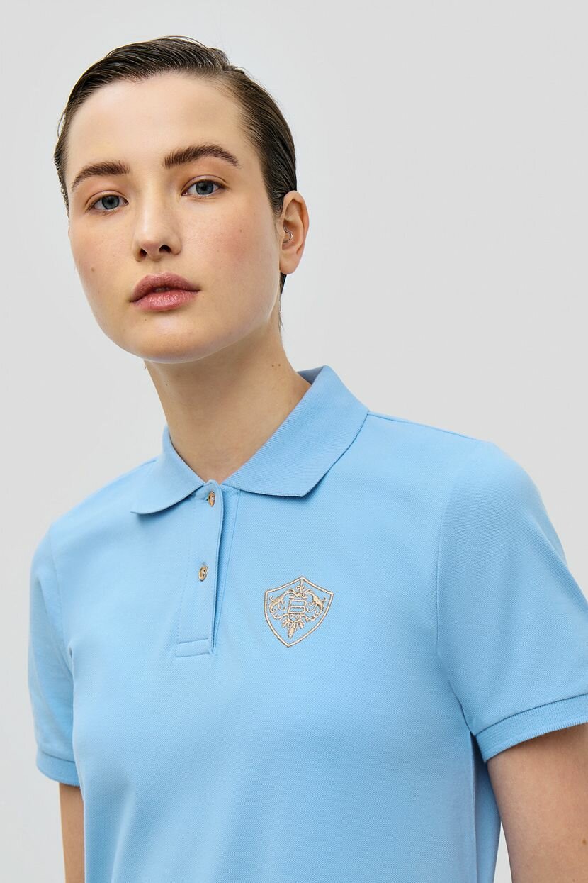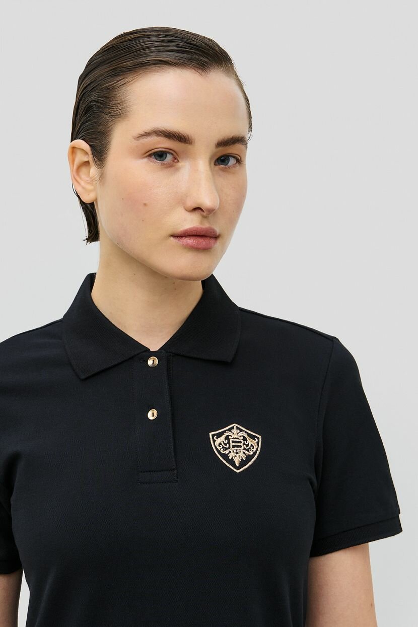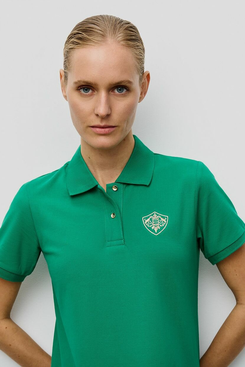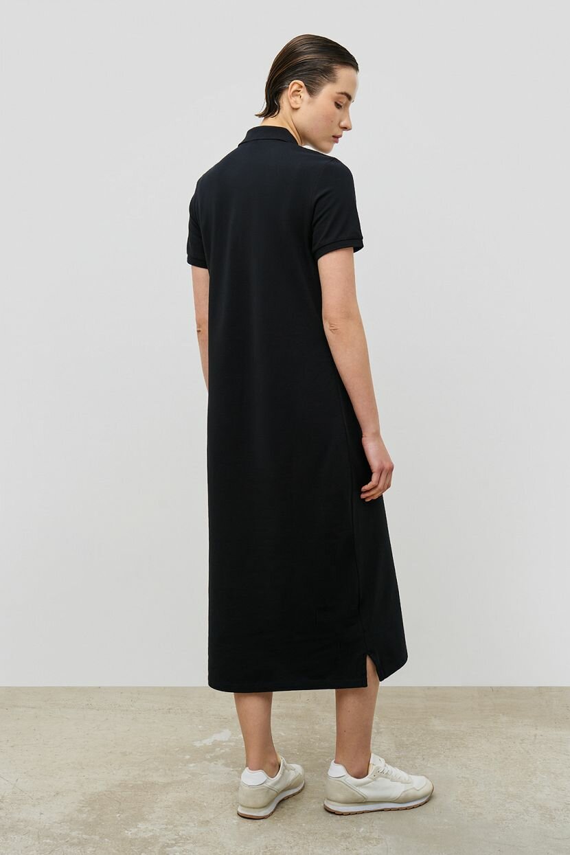 Отличный вариант для жаркого лета - платье-поло в актуальной длине миди. Простое, лаконичное, но очень стильное, оно подчеркнет красоту вашей фигуры и подарит ощущение комфорта. Вышитая эмблема и фурнитура золотистого цвета стали акцентом базовой модели. Рекомендуем сочетать это платье с обувью в спортивном стиле.