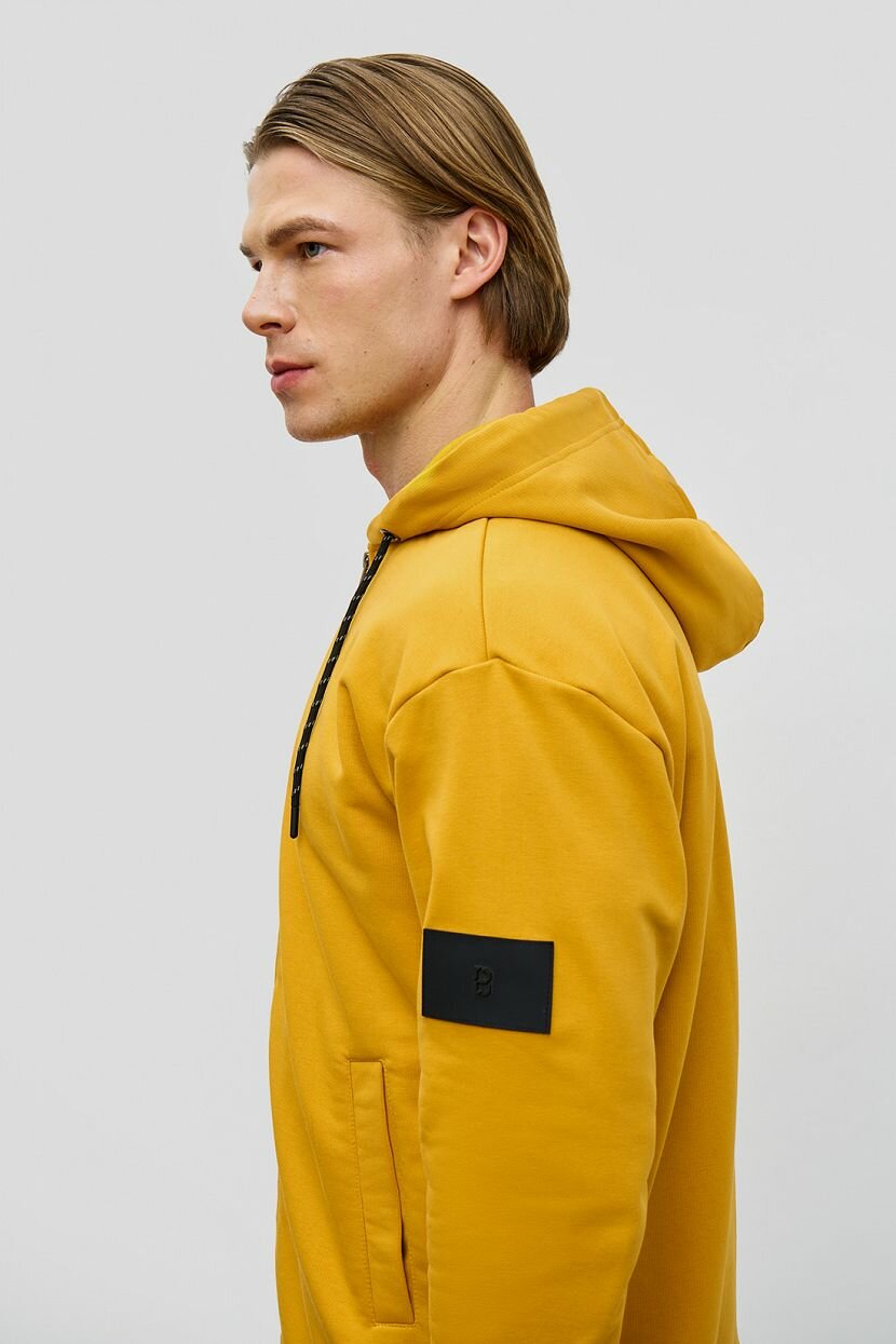 Худи выполнено из мягкого трикотажа-футера с петельчатой внутренней поверхностью. В основе натуральный хлопок - мягкий и гипоаллергенный. Мы используем длинноволокнистый хлопок, чтобы создать более прочное и ровное трикотажное полотно с меньшим количеством ворсинок (качество пенье). Полиэстер гарантирует сохранность формы и цвета изделия даже после активной носки и многочисленных стирок. Худи имеет умеренно свободный крой со слегка спущенной линией плеча, капюшон с регулировкой объёма и карман-кенгуру.