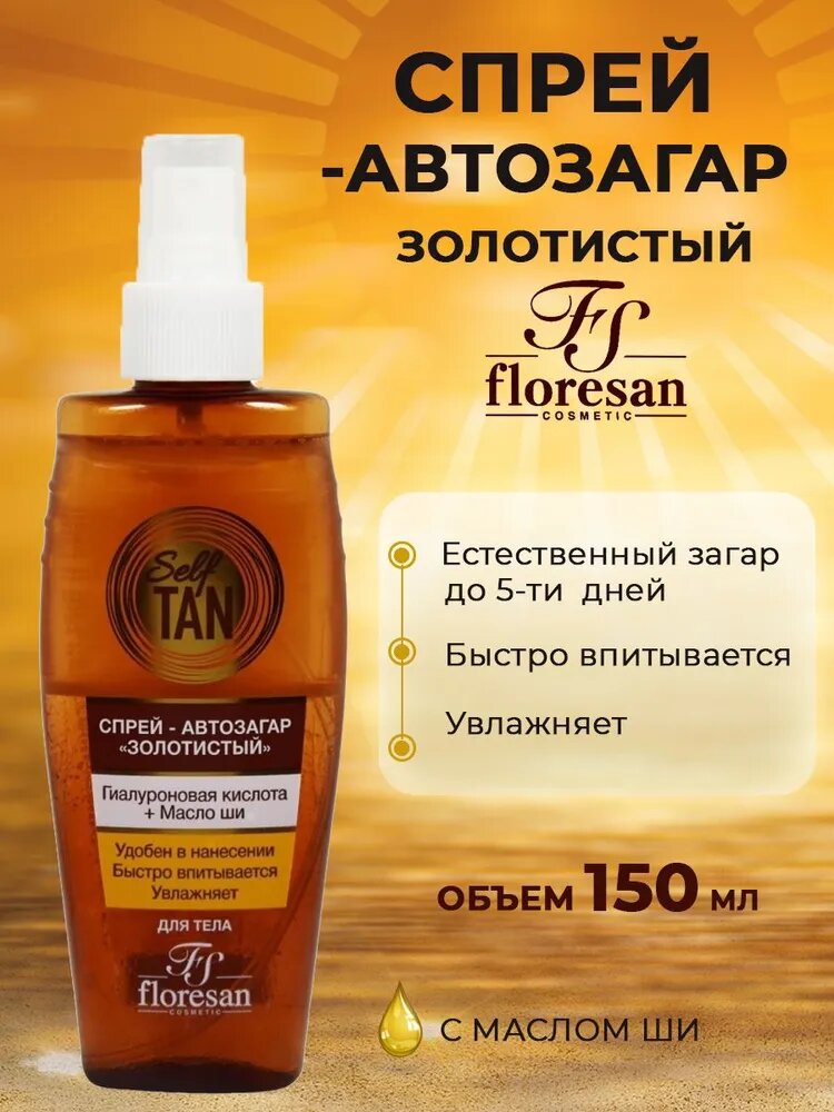 Практичный и удобный спрей-автозагар можно использовать круглый год для получения равномерного загара. Через 3-4 часа после нанесения средства кожа приобретает золотистый, ровный и удивительно естественный загар, который сохраняется до 5 дней. Масло Ши и гиалуроновая кислота, входящие в состав спрея, тонизируют кожу, восстанавливают ее упругость и эластичность, препятствуют обезвоживанию эпидермиса. Может применяться для маскировки локальной депигментации кожи.
