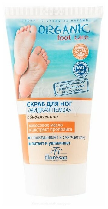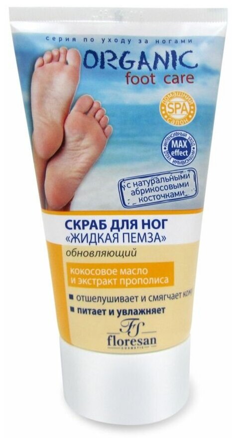 Обновляющий скраб «Жидкая пемза» разработан для систематического ухода за ступнями ног. Высокое содержание мочевины способствует разрыхлению огрубевшей кожи, а натуральные абразивные частички косточек абрикоса бережно отшелушивают и разглаживают кожу стоп. Натуральные экстракты прополиса, пихты и кокосовое масло питают, увлажняют и ускоряют процессы регенерации и обновления кожи. Регулярное использование скраба поможет придать стопам аккуратный, ухоженный вид.