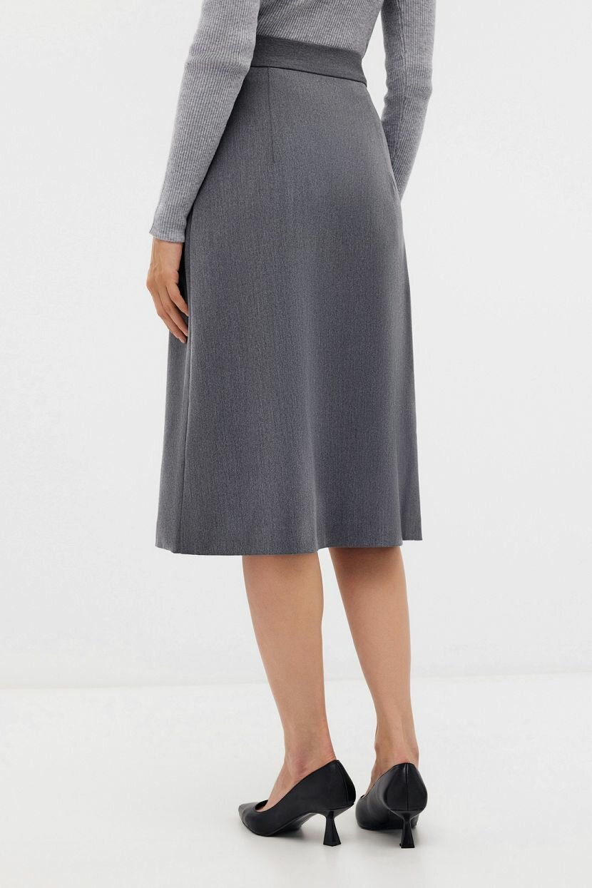 Юбка трапеция с высокой талией Baon - станет универсальной вещью в Вашем повседневном гардеробе. Юбка А-силуэта выполнена из пластичной, плотной поливискозной ткани, которая отлично держит форму. Вискоза в составе обеспечивает гигроскопичность, хорошо пропускает воздух и впитывает влагу, добавляет пластичности и мягкости, отлично держит тепло. В тканях из этого волокна невероятно комфортно: тепло зимой и прохладно летом. Добавление полиэстера в состав повышает износостойкость и упругость изделия, увеличивает стабильность полотна – изделие при правильном уходе долгое время сохраняет свой первоначальный вид и не электризуется. Эластан минимизирует деформацию и придает упругость ткани. Юбка женская с запАхом трапециевидного силуэта имеет актуальную длину и посадку на талии, застегивается на пояс с пряжкой, с внутренней стороны фиксируется на пуговицу, внутри подкладка из вискозы. Базовый силуэт, приятная плотная ткань, универсальный черный цвет - идеальное сочетание для актуальных образов в городском и деловом стилях. Сочетай удлиненную юбку трапецию с блузками, джемперами, топами и жакетами, добавляй стильные аксессуары и модную обувью - создавай новые повседневные комплекты на каждый день, в офис, на работу, так и для особых случаев. Юбка на подкладке может быть скомбинирована с жакетом Baon из той же ткани, в этой юбке Вы будете выглядеть стильно и элегантно.