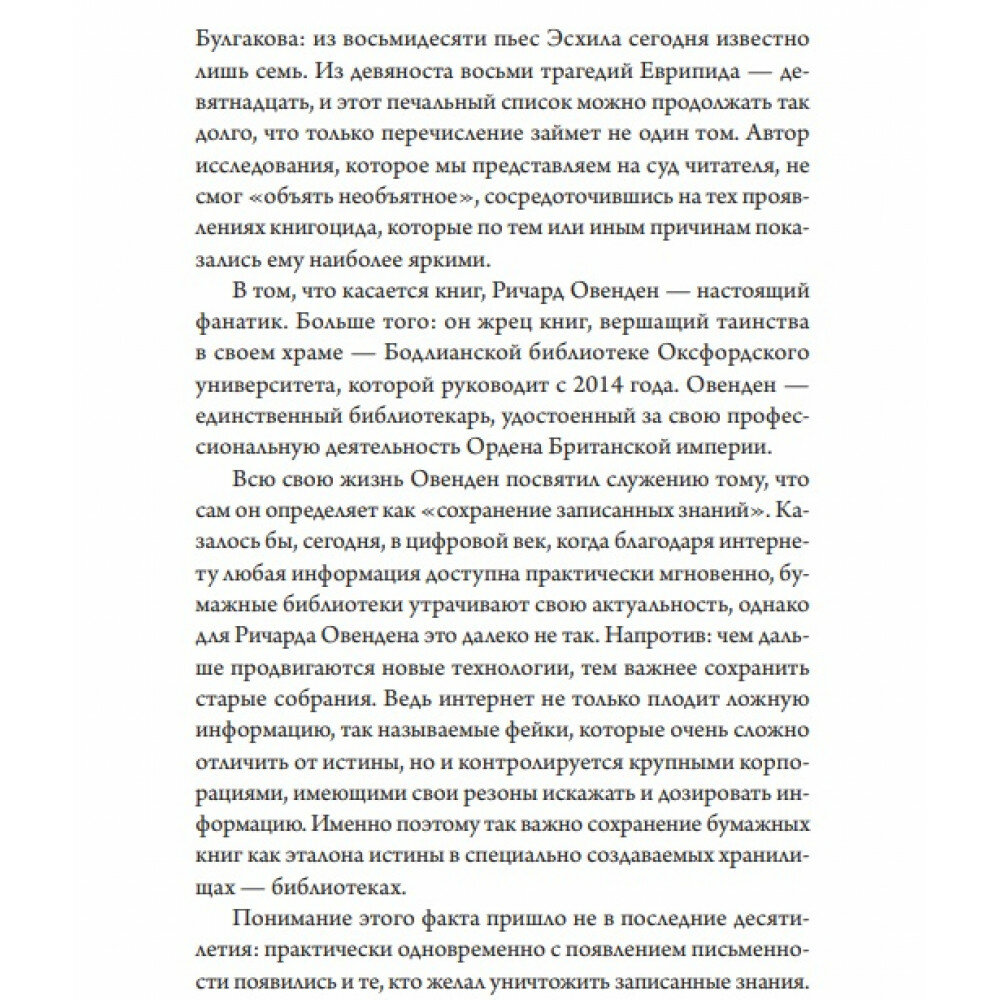 На протяжении всей своей истории люди не только создавали книги, но и уничтожали их. Полная история уничтожения письменных знаний от античности до наших дней - в глубоком исследовании британского литературоведа и библиотекаря Ричарда Овендена.