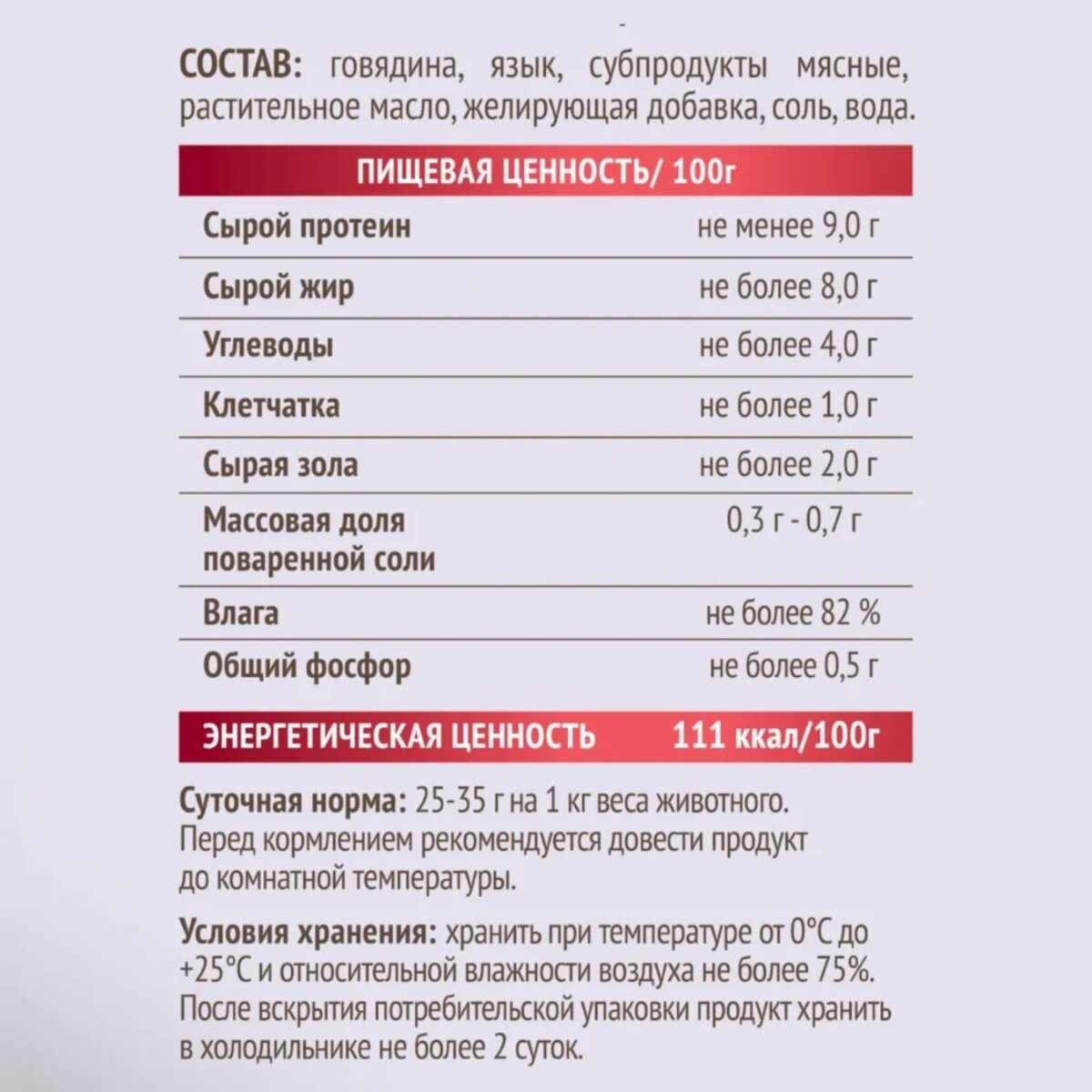 Особая серия кормов премиум класса - в составе натуральное мясо и качественные мясные субпродукты (язык, рубец, печень, сердце), которые являются ценным источником белка, а также витаминов и микроэлементов в рационе собаки. Оптимальное сочетание правильного питания и положительных эмоций подарит энергию и удовольствие вашему питомцу! Подходит для собак всех пород, имеет консистенцию среднего или крупного мясного фарша (в зависимости от веса банки).