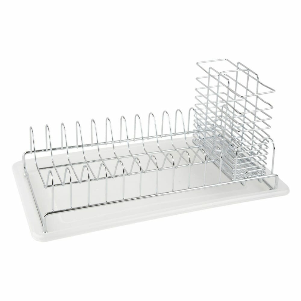 Посудосушитель настольный с пластиковым поддоном и стаканом для сушки столовых приборов. Размер посудосушителя 450х210х330 мм.Цвет: ХромЯркая индивидуальная упаковка Lemax.