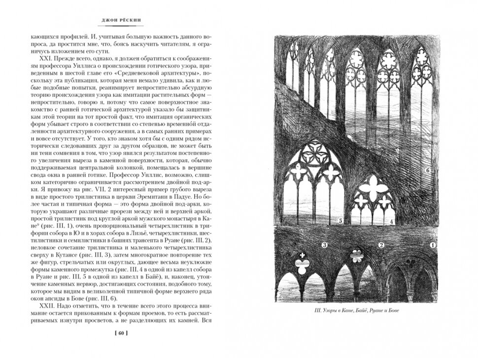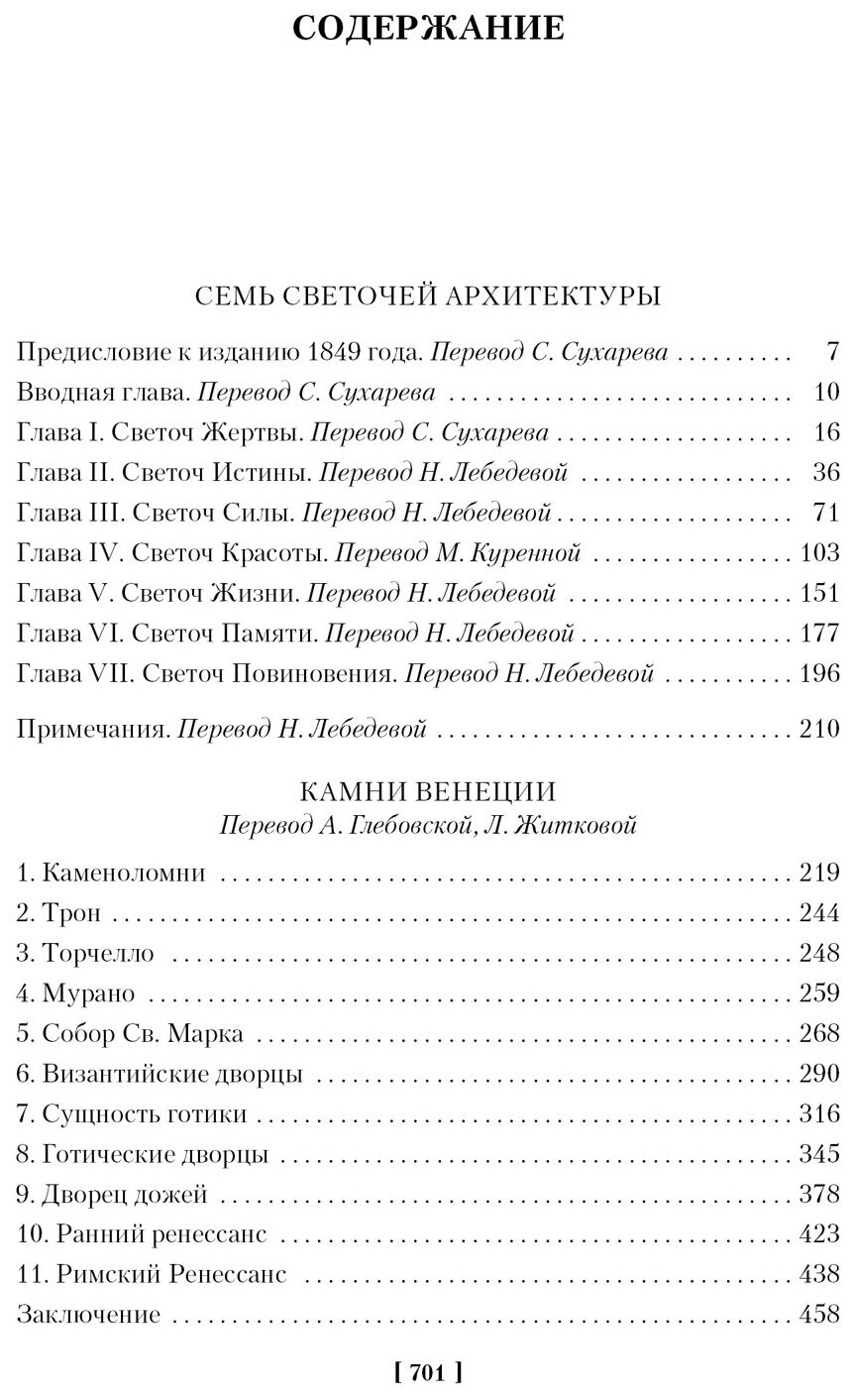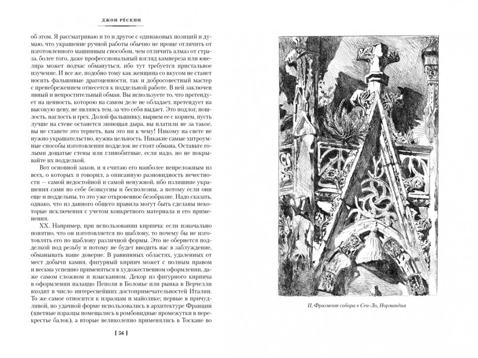 Искусством начала увлекаться не так давно, поэтому не успела набрать базу произведений. Я случайно увидела у себя в ленте Рёскина в этом издании, прочитала первые пару страниц и решила заказать. Ни капли не пожалела о покупке! Автор подмечает мельчайшие детали архитектурных объектов. На первых порах было трудно влиться в термины, приходилось постоянно лезть в гугл, чтобы уточнять, для чего, например, служит капитель. Но от этого читать становилось только интереснее. Приходилось целиком погружаться в произведение, листать между страницами, сравнивать, искать фото произведений, о которых идёт речь, рассматривать. Закладкой отмечала почти каждую страницу, а это значит, что в книге действительно очень много ценного