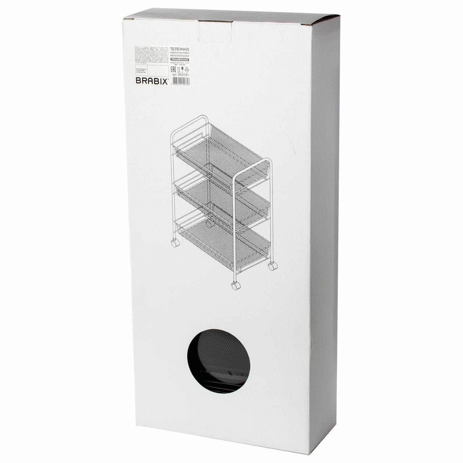 Этажерка (тележка) BRABIX офисно-бытовая 3 яруса на колесах металл черная 435*26*625 см 603751